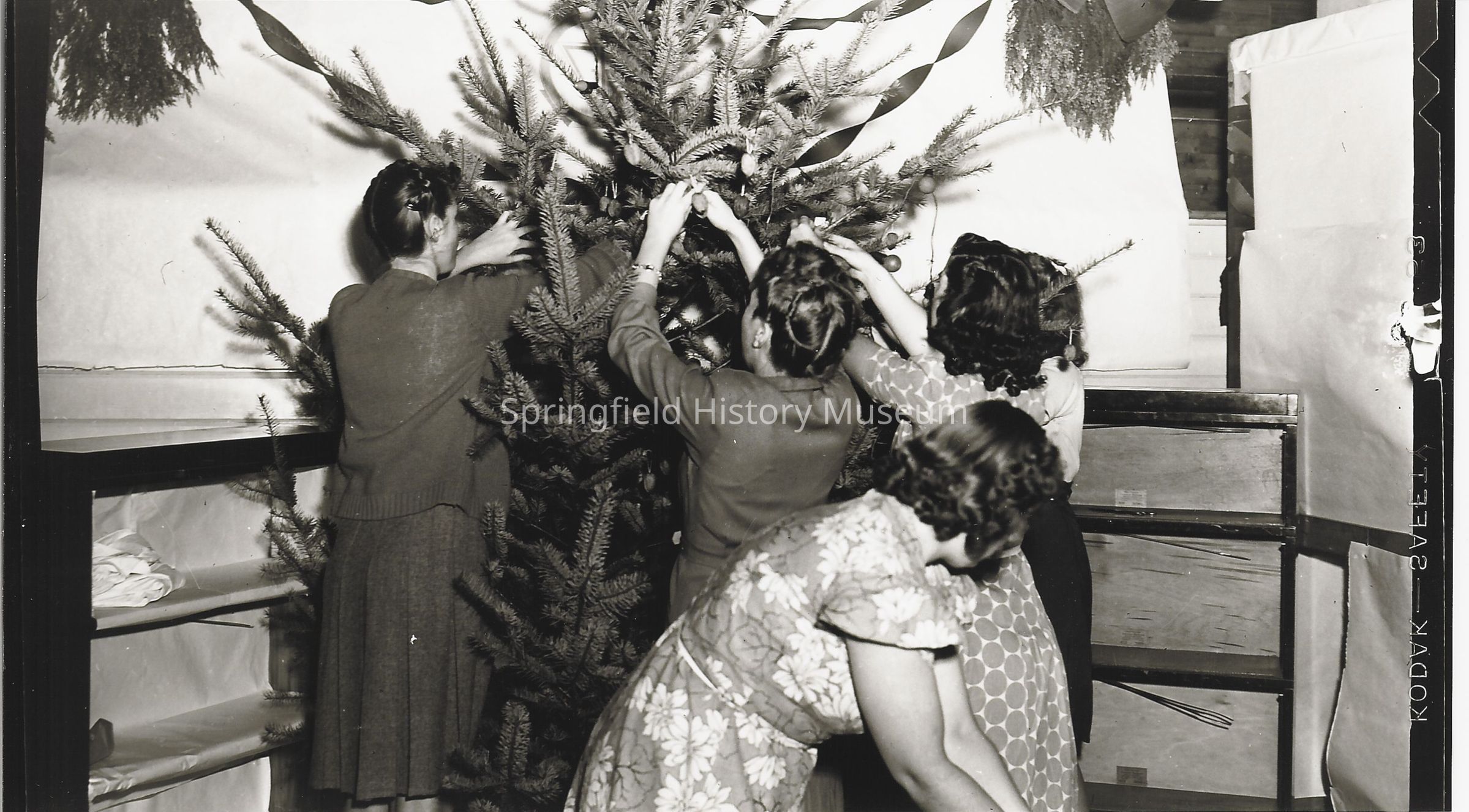 Photograph of students decorating a tree at Springfield High School, Springfield, Oregon, circa 1940sEntry/Object ID