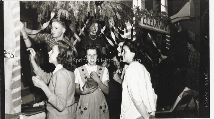 Photograph of a group of students participating in carnival activities. Springfield High 1940s