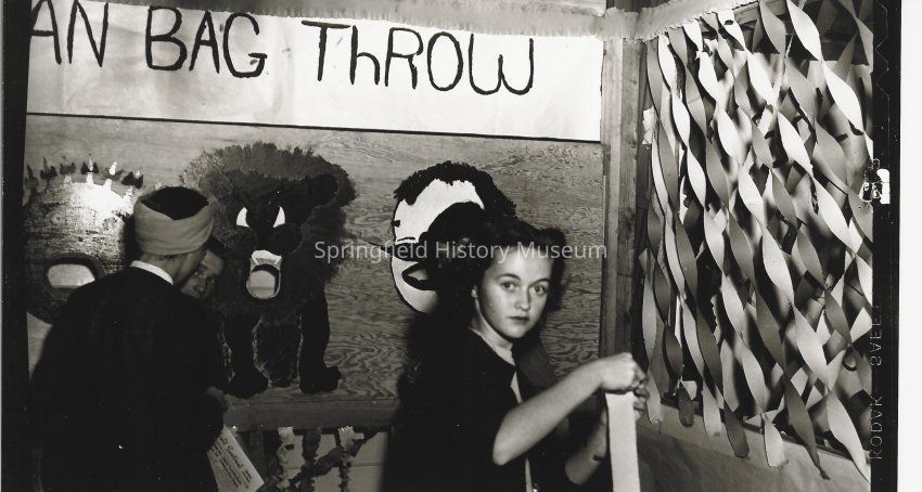 Photograph of students setting up bean bag game at Springfield High carnival, Springfield, Oregon, circa 1940sEntry/Object ID
