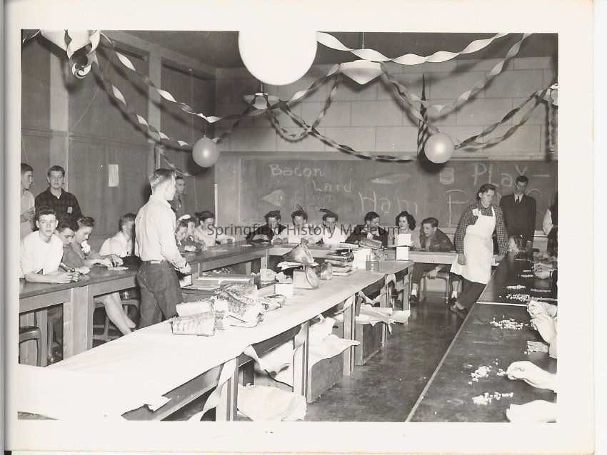 Photograph of students weighing meat at a Springfield High School Carnival, circa 1940sEntry/Object ID