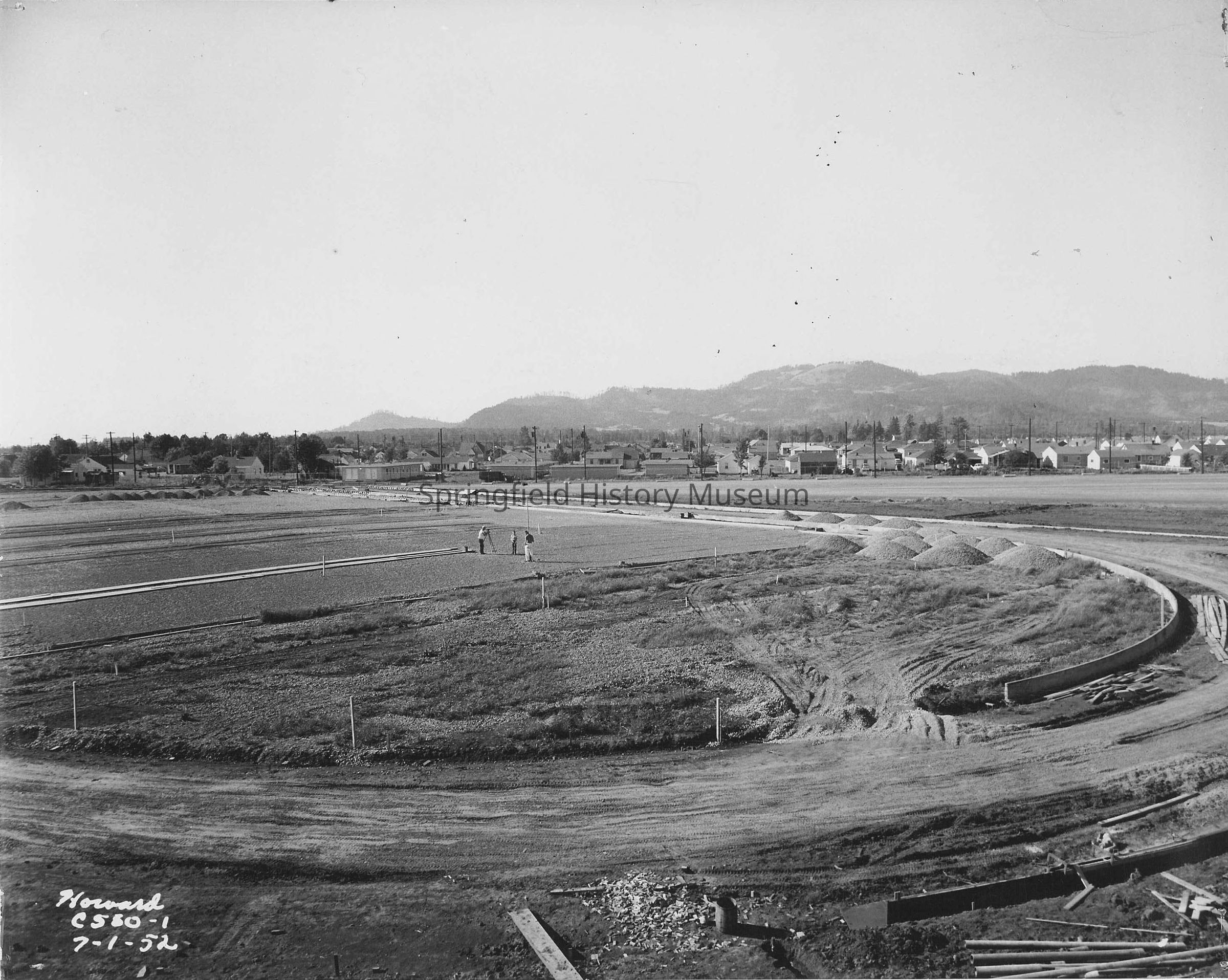 Photograph of surveying site of Silke Field track, Springfield, Oregon, 1952Entry/Object ID