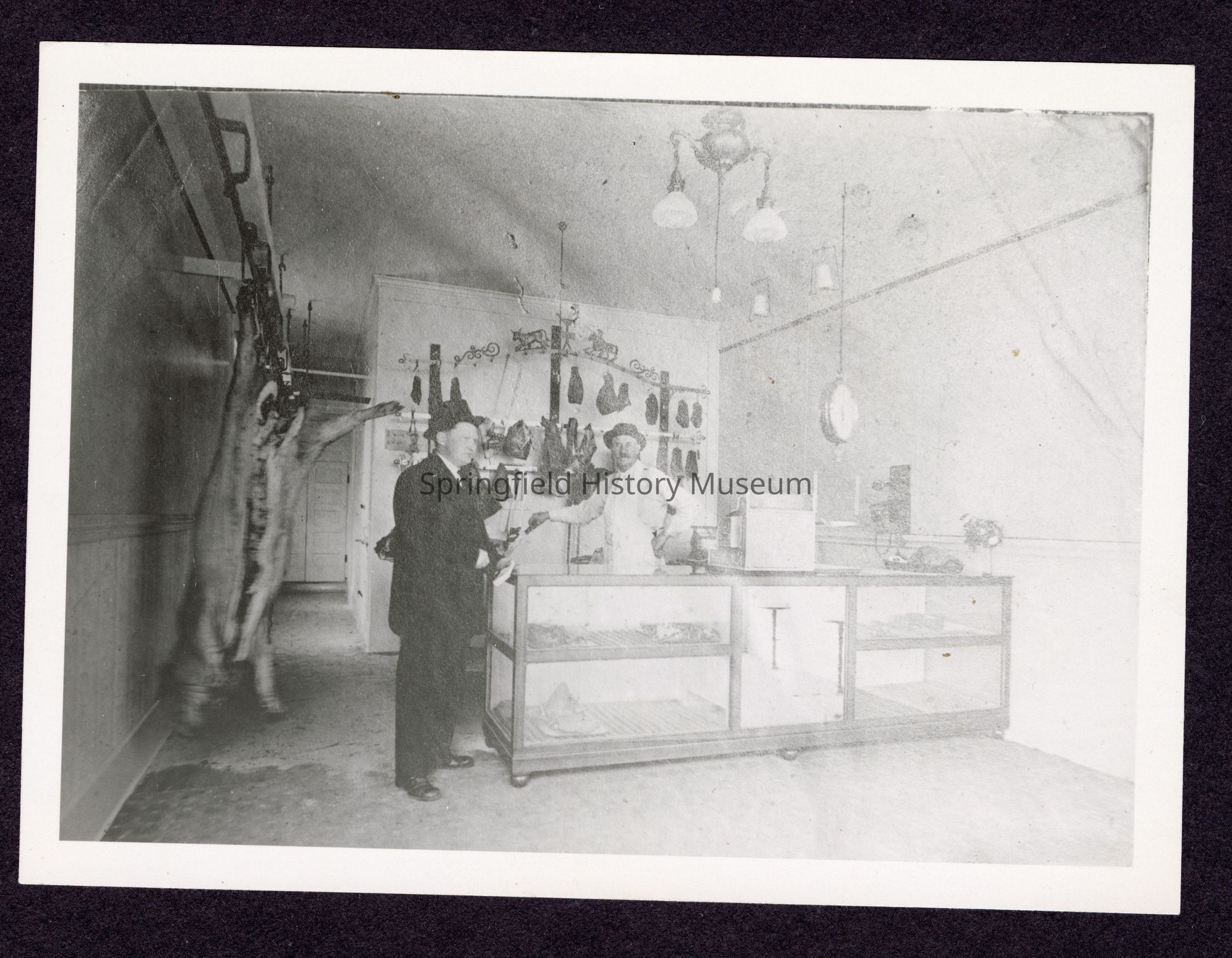 BACK 1915 Roy Jenkins and Chas Swarts, Swarts Meat Market at 4th and Main St. Springfield, Oregon.Collection