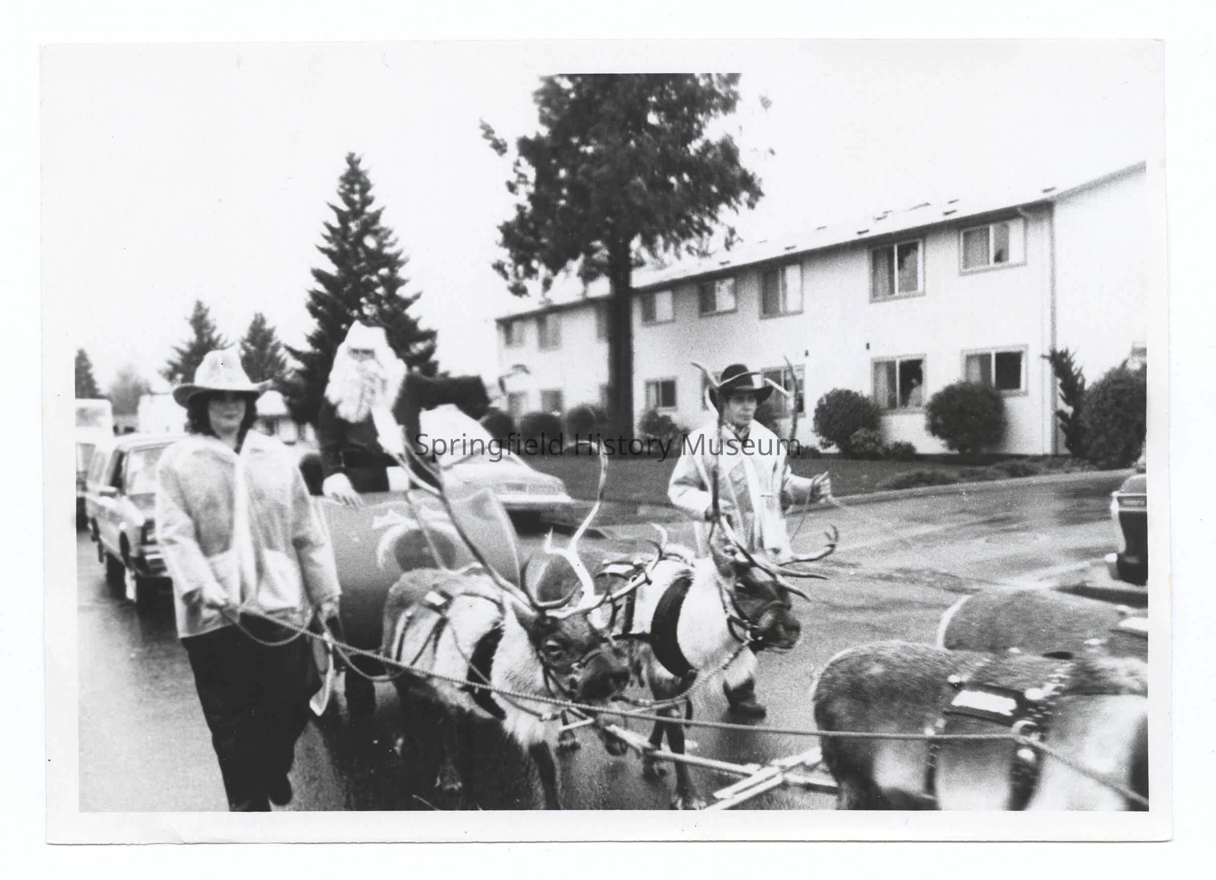 Photograph of the 1981 Christmas Parade, Springfield. Santa Claus and Reindeer Float.