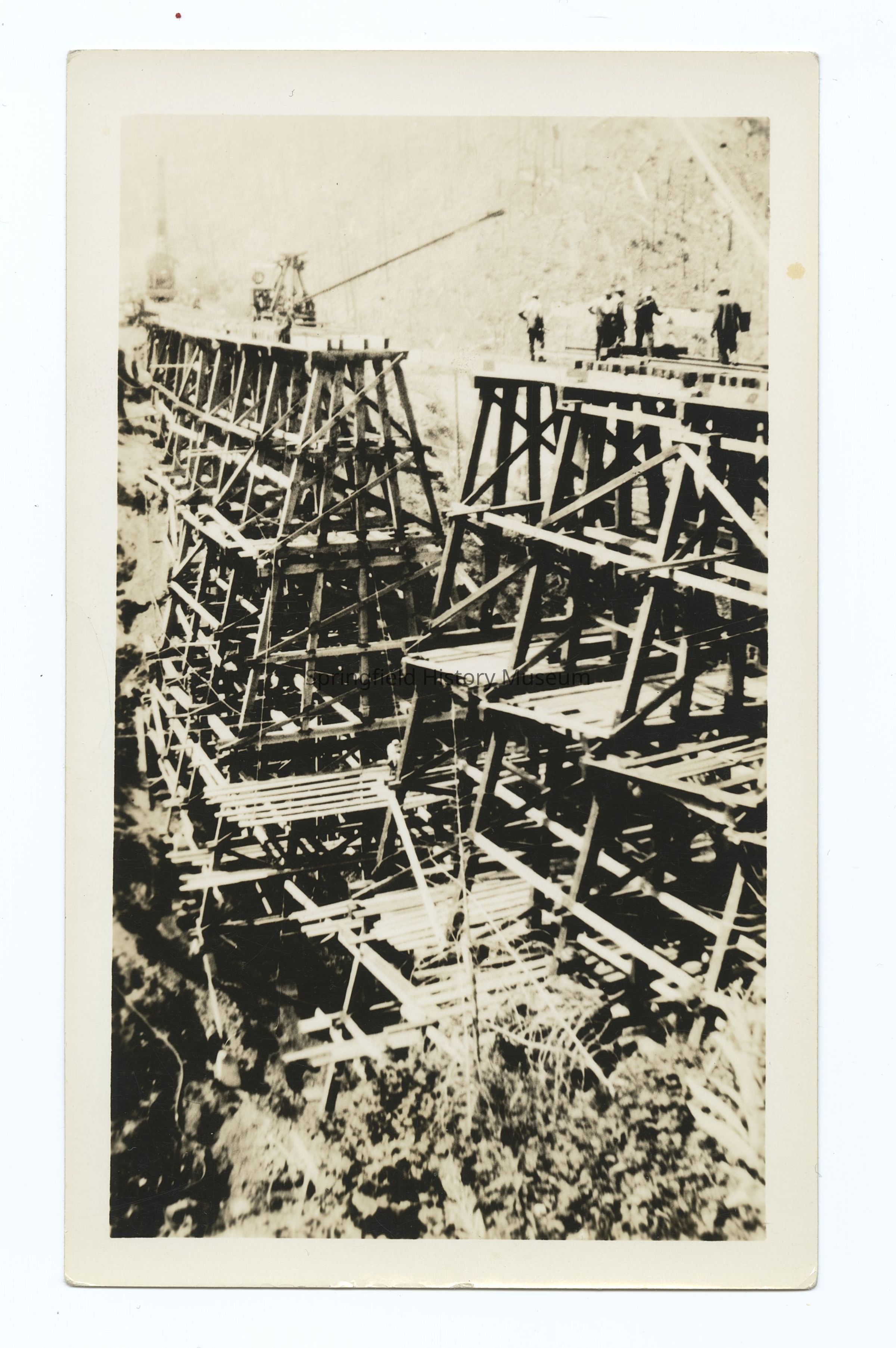 Photograph of the collapse of a train trestle bridge, Tillamook Branch, South Pacific Railroad, 1939-1940Entry/Object ID