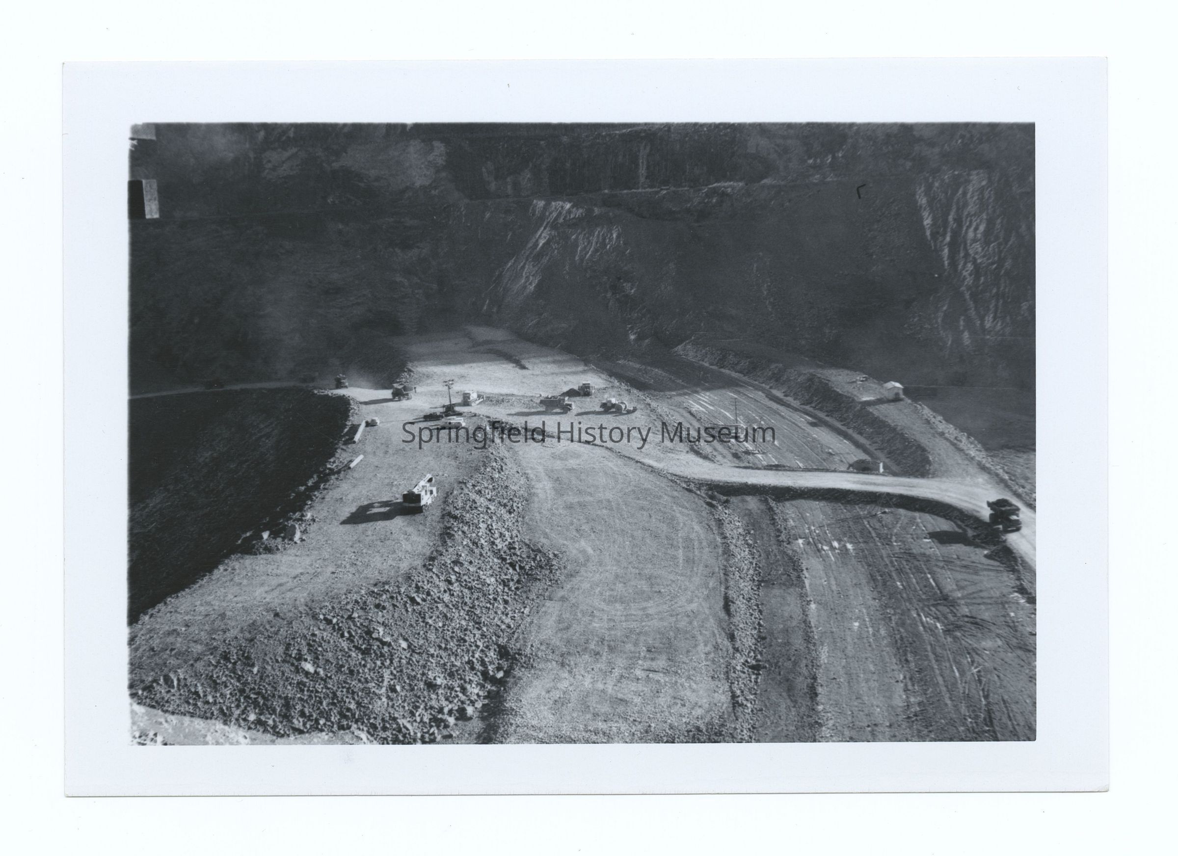 Photograph of the construction of a reservoir, Oregon, undated. Possibly Lookout Point or Blue River Reservoir during winter. Roads section.Photograph Details