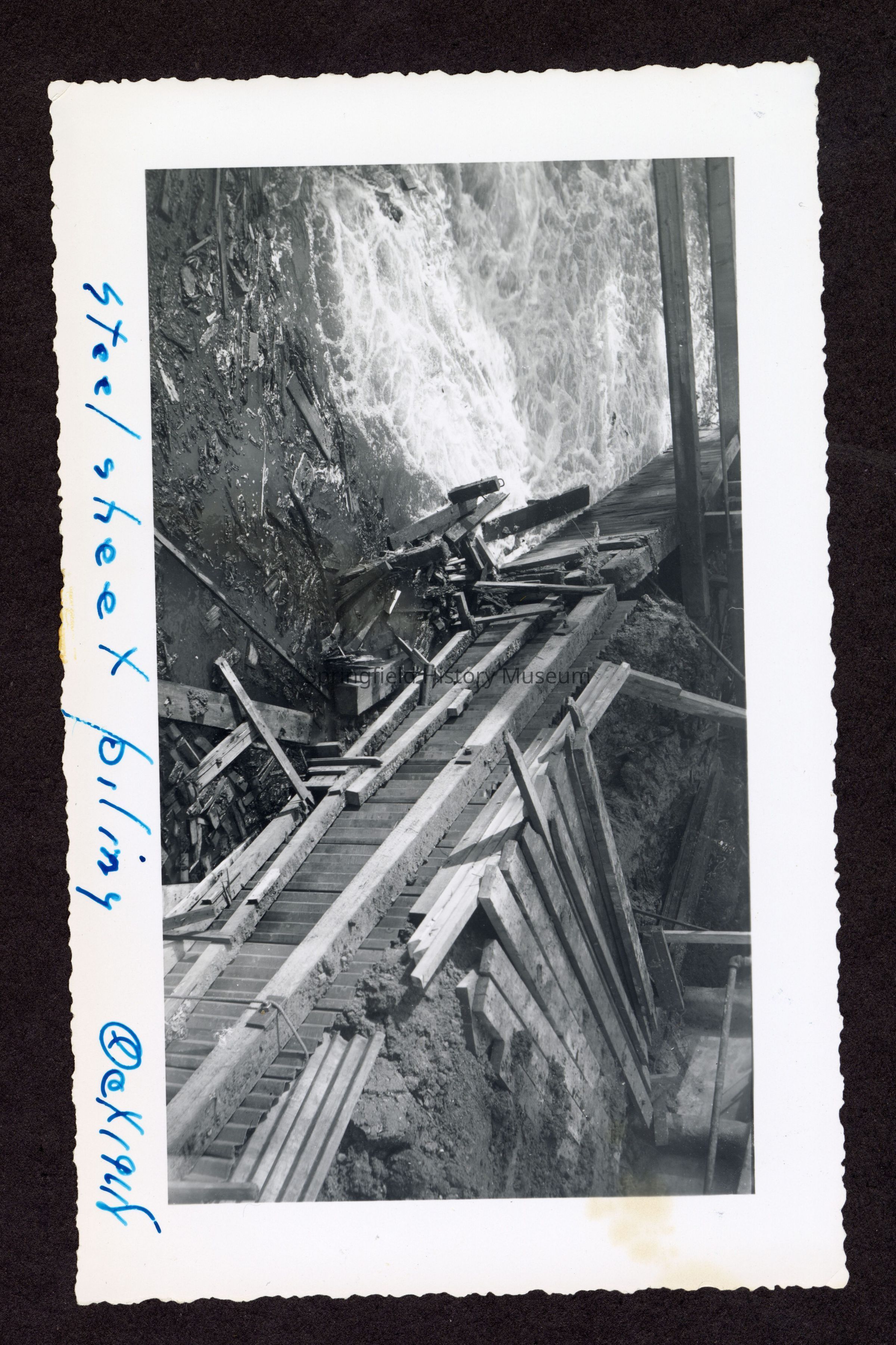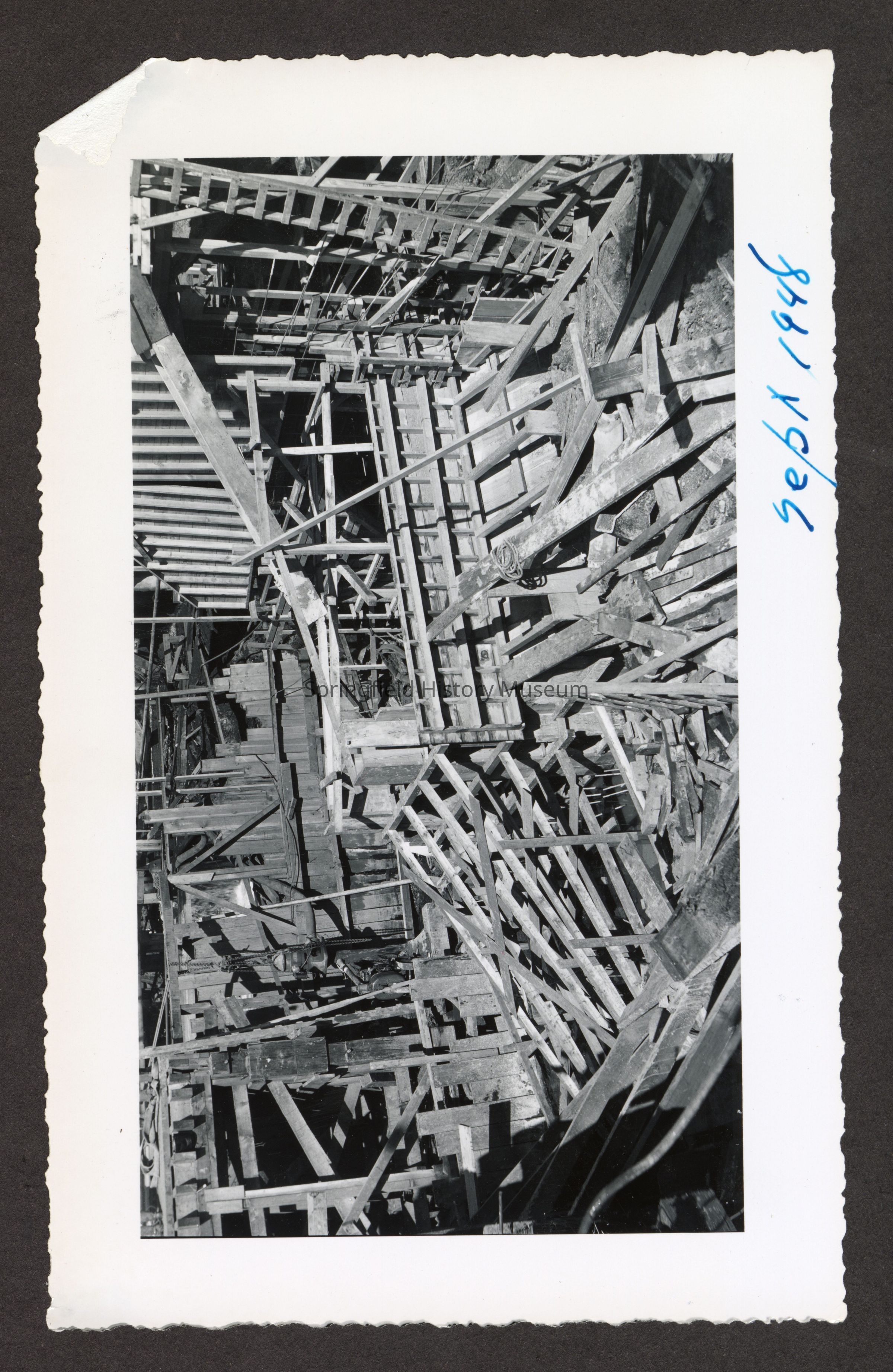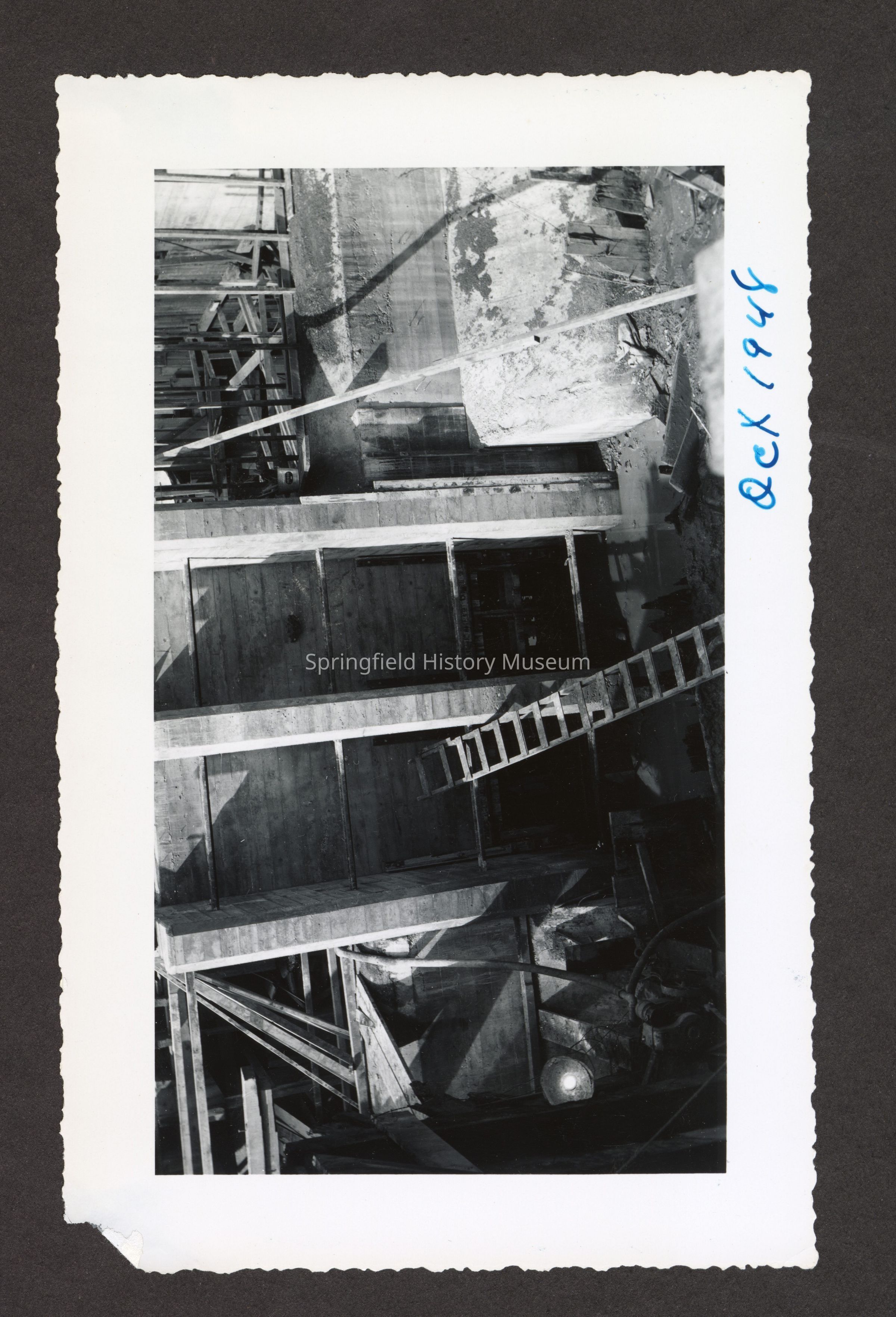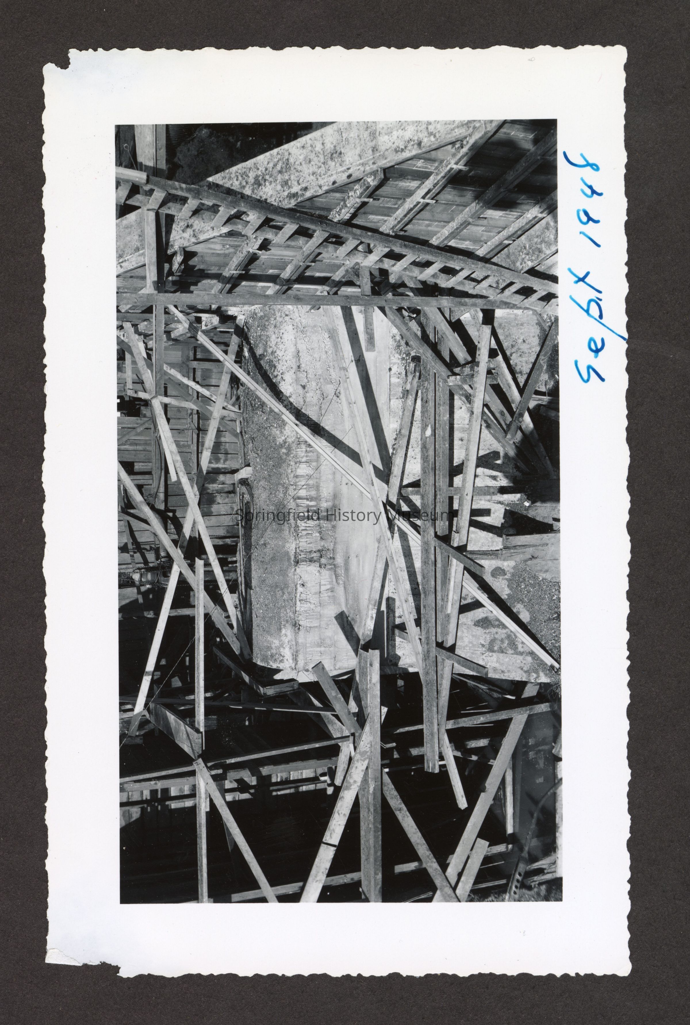 Photograph of the construction of the new dam at Booth-Kelly Lumber Mill, on back in pen: "Aug 1948"