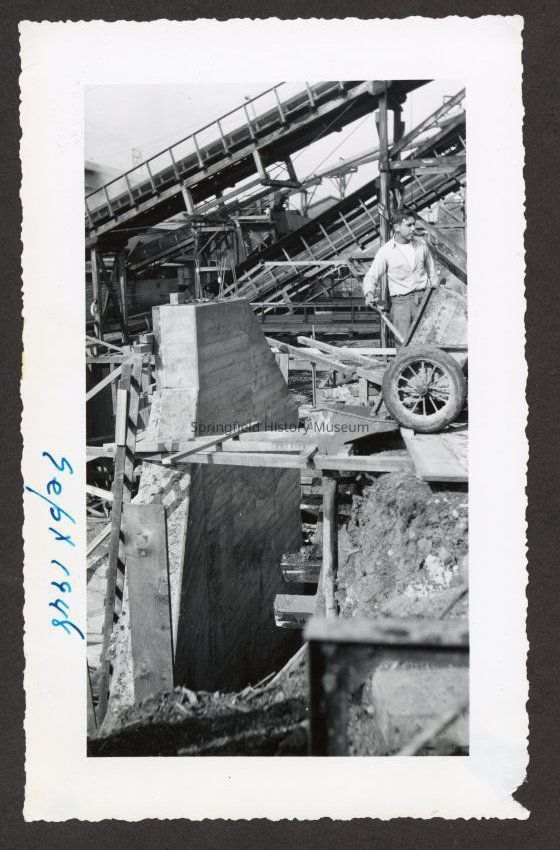 Photograph of the construction of the new dam at Booth-Kelly Lumber Mill, Springfield, Oregon, 1948Entry/Object ID