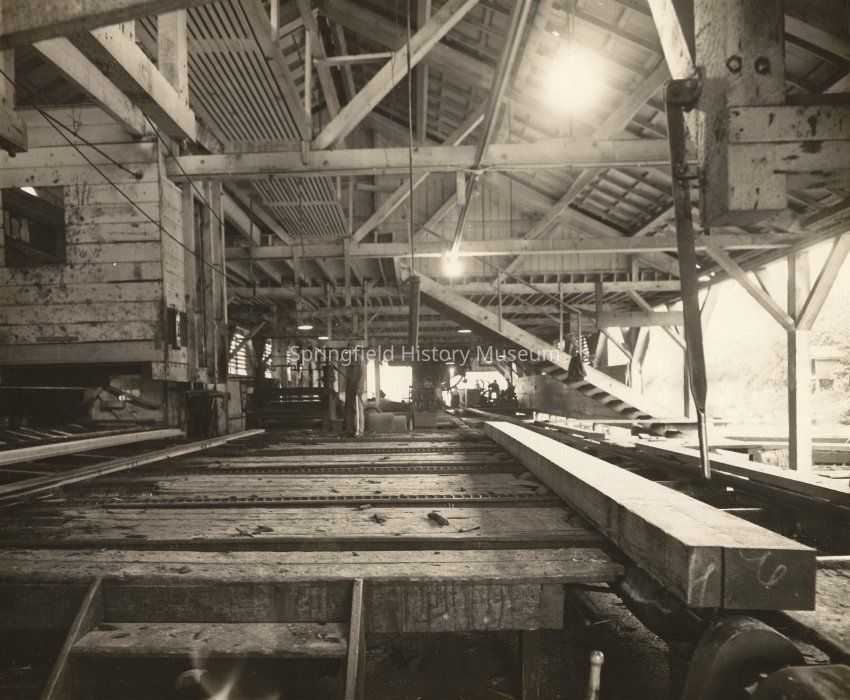 Photograph of the interior of the old saw mill at Fischer Company, Marcola, Oregon, circa 1948Entry/Object ID