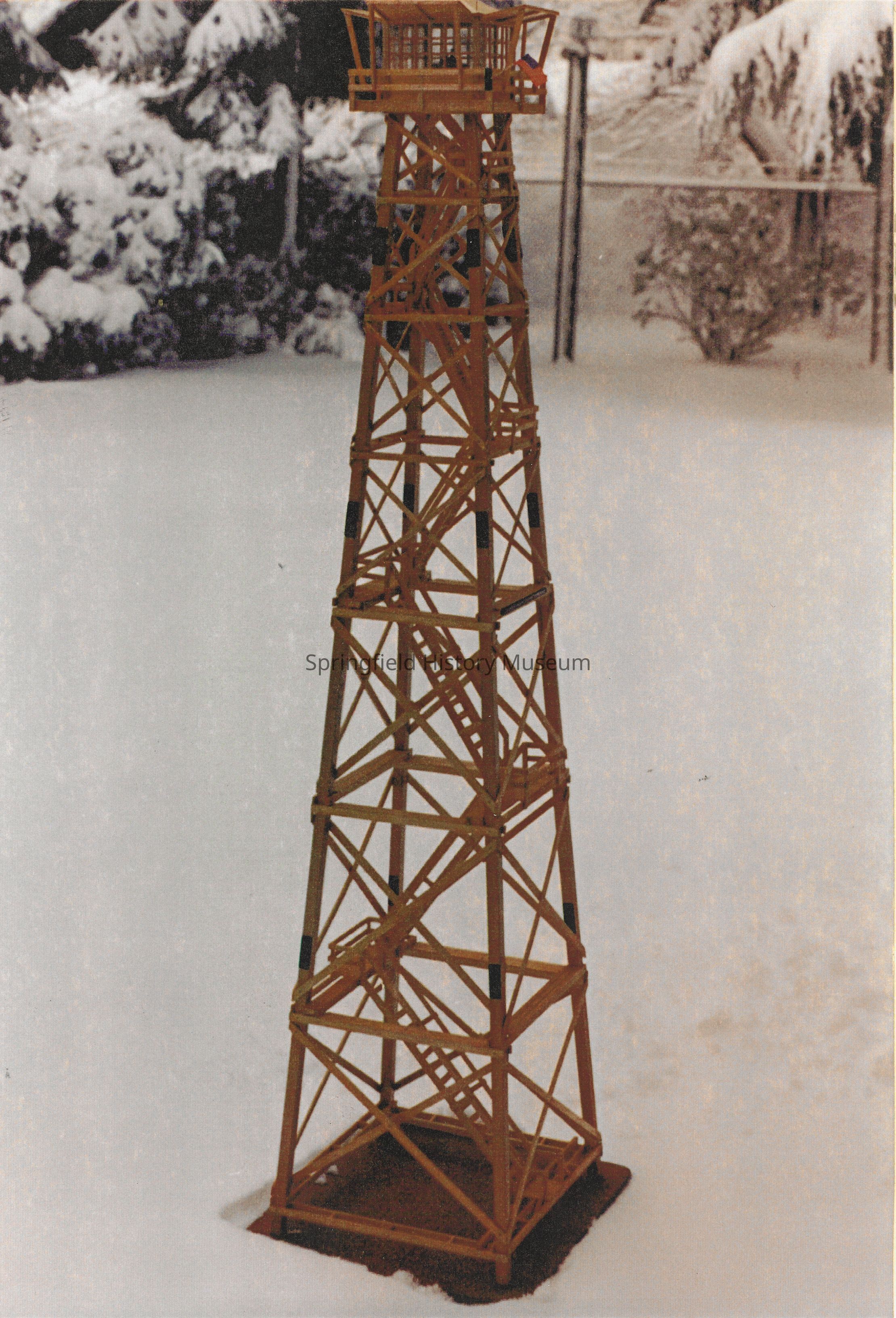 Photograph of the Mt. Nebo Lookout replica in the snow, undated. Built by Roger 'Bud' Hall.