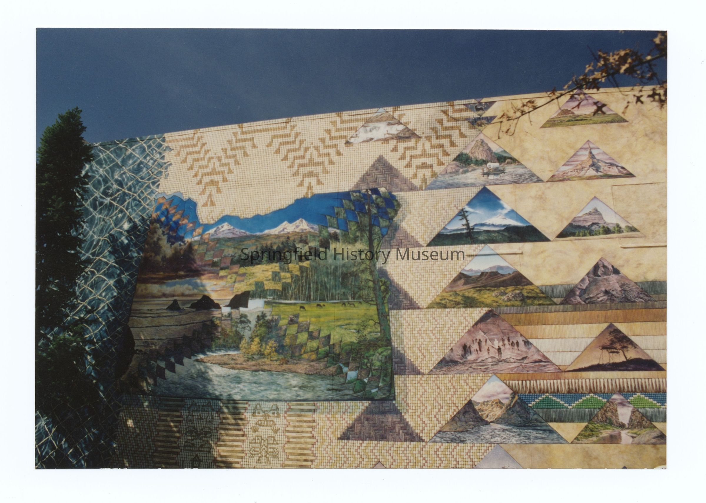 Photograph of the mural "the Oregon Trail" by Ann Woodruff Murray, 500 Main Street, Springfield, undated, circa 1990.Photograph Details