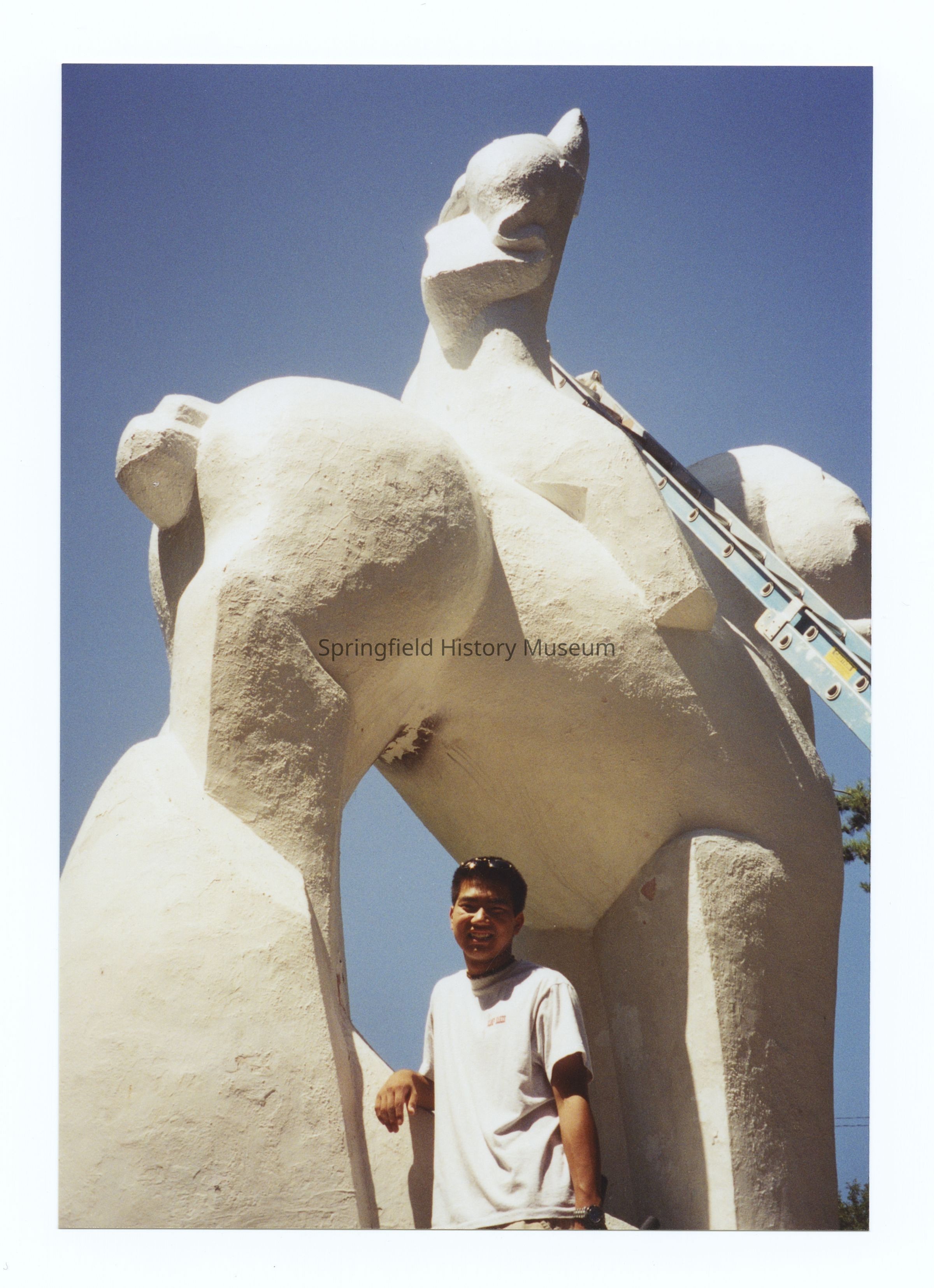 Photograph of the restauration of the 'Equistrian' statue, Springfield, 2003Entry/Object ID