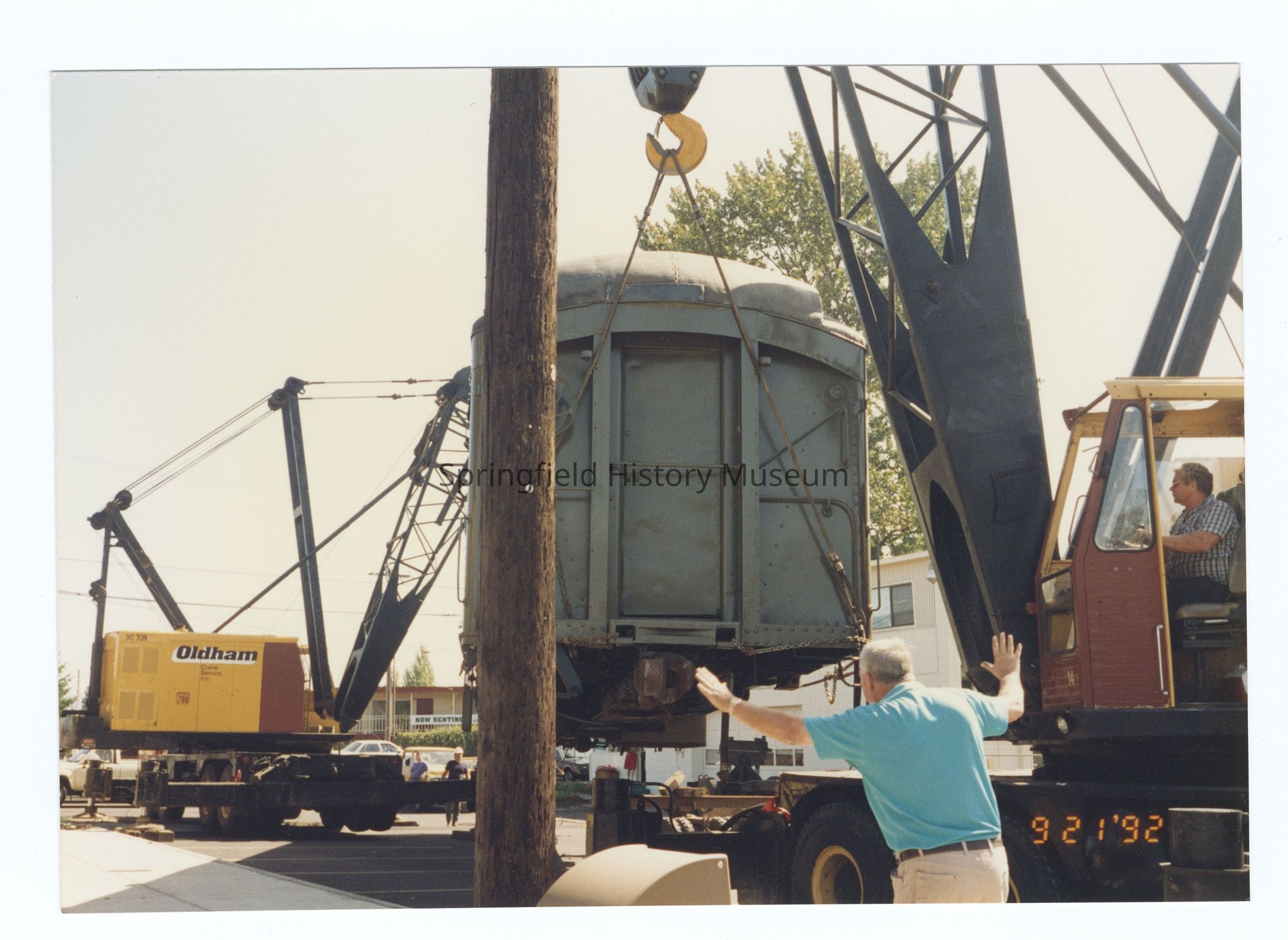Photograph of the RPO Railcar relocation, Springfield, 1992Entry/Object ID