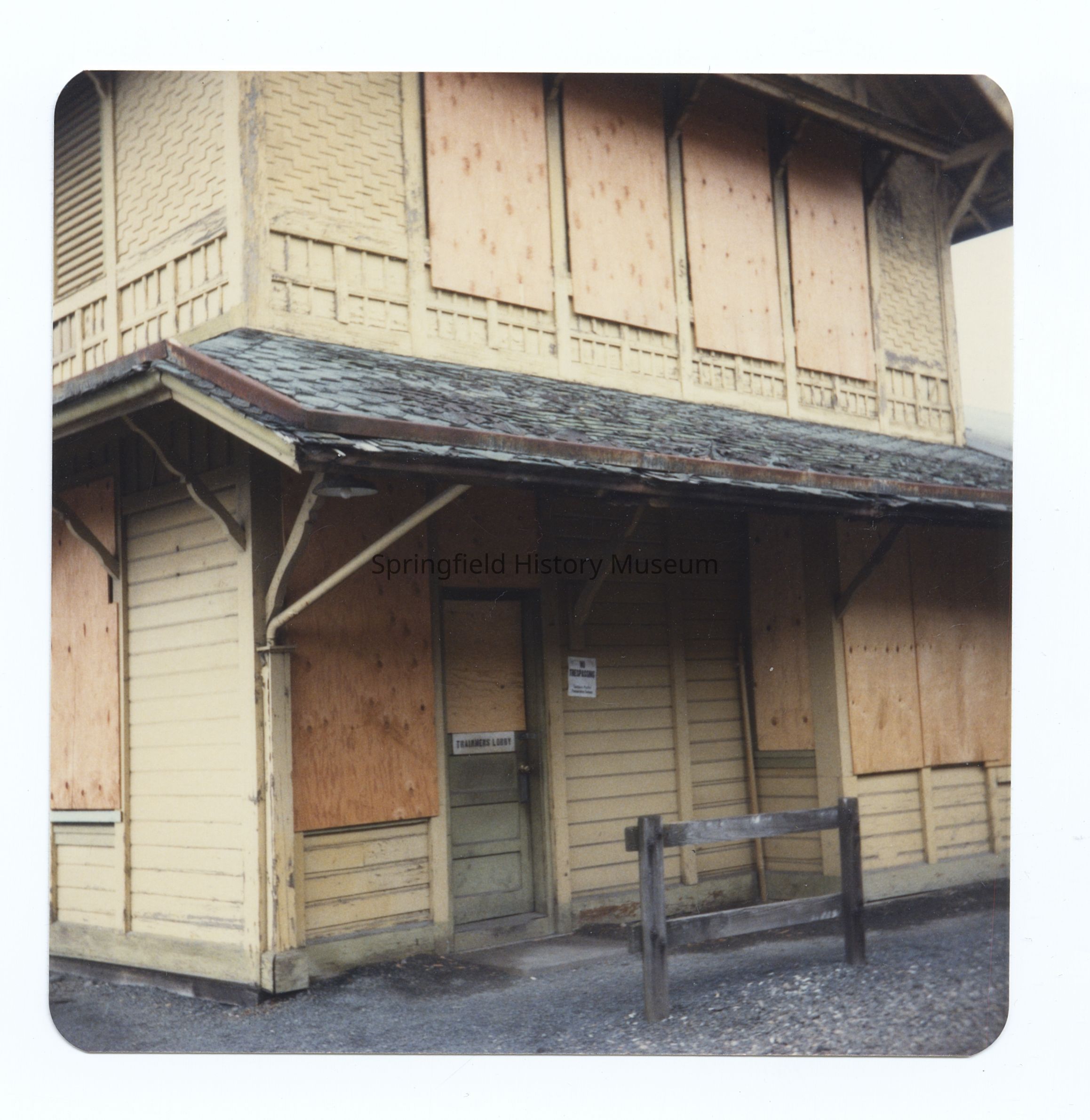 Photograph of the Springfield Train Depot and proposed relocation site, 1985. Part of a group of photographs taken by David M. Campbell, 3/30/1985. Also see 2021.005.570 to 580.Photograph Details
