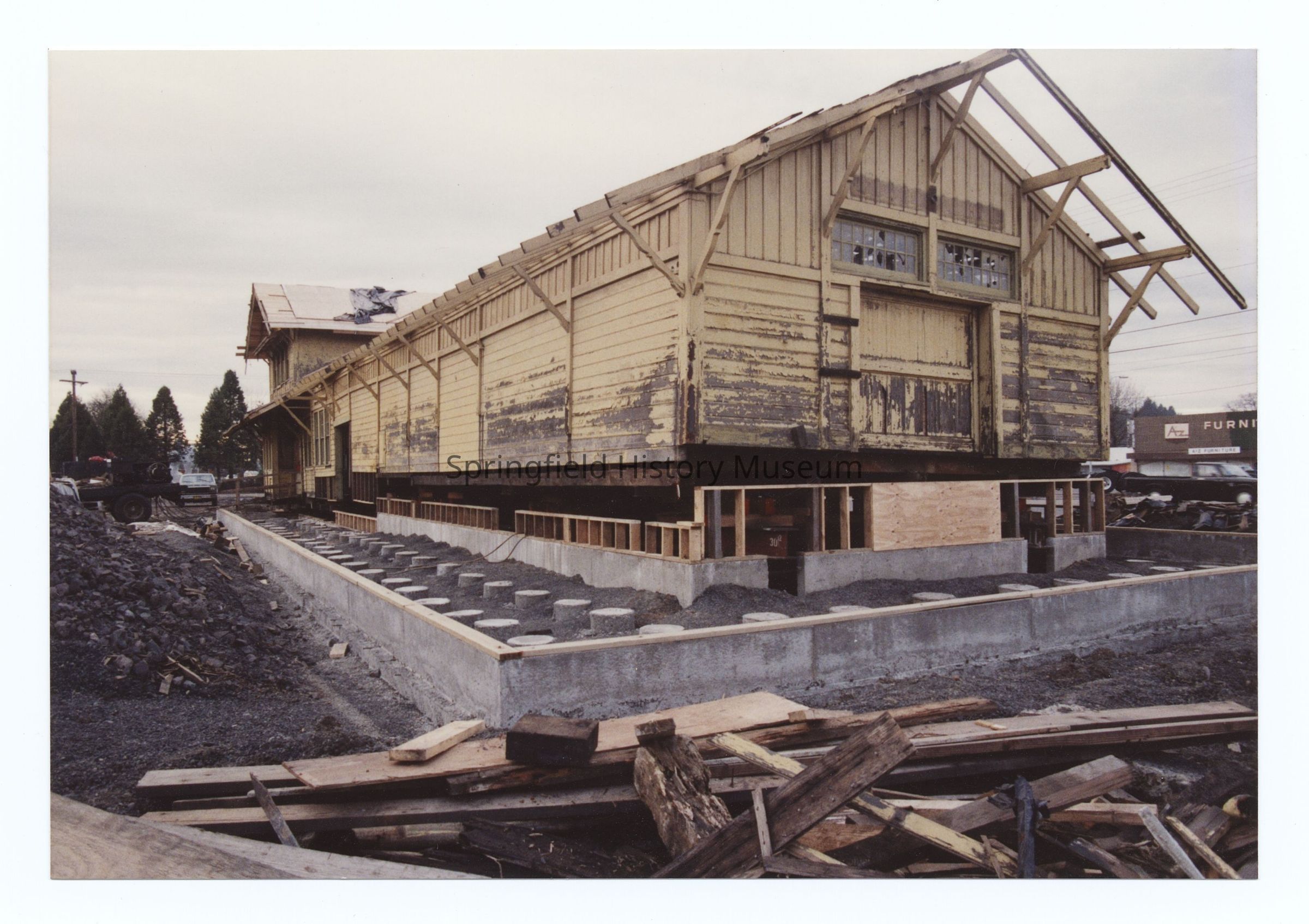 Photograph of the Springfield Train Depot relocation and restauration, circa 1989Entry/Object ID