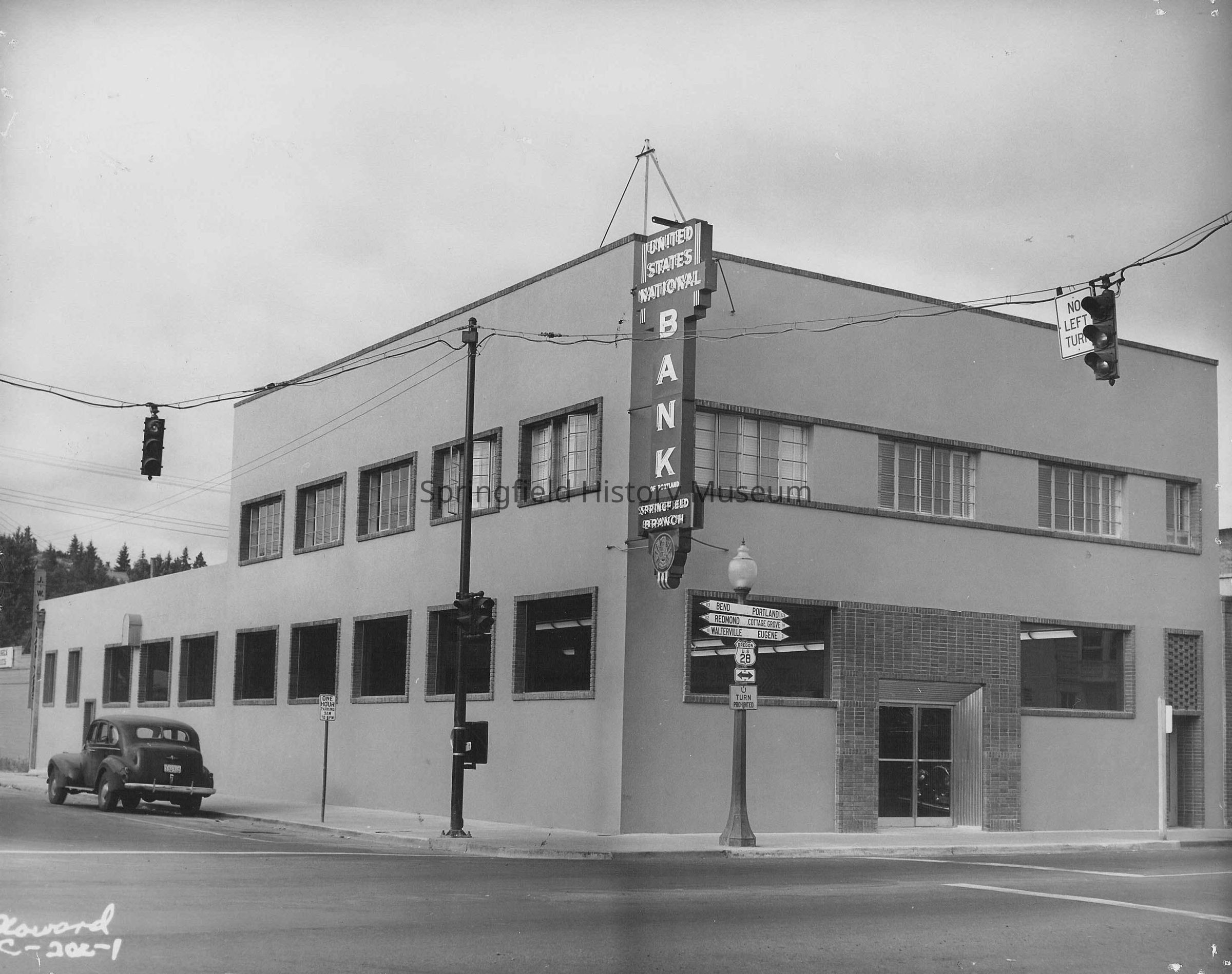Business & Industry, The United States National Bank, The Bank of Oregon, Main Street, 5th Street, Cars, Street Views, Traffic Lights, Highway 28, Business & Industry--Banks--The United States National Bank, Business & Industry--Banks--The Bank of Oregon, Springfield--Streets--Main Street, Springfield--Streets--5th Street, Transportation--Motor Vehicles--Cars, Street Views--Springfield