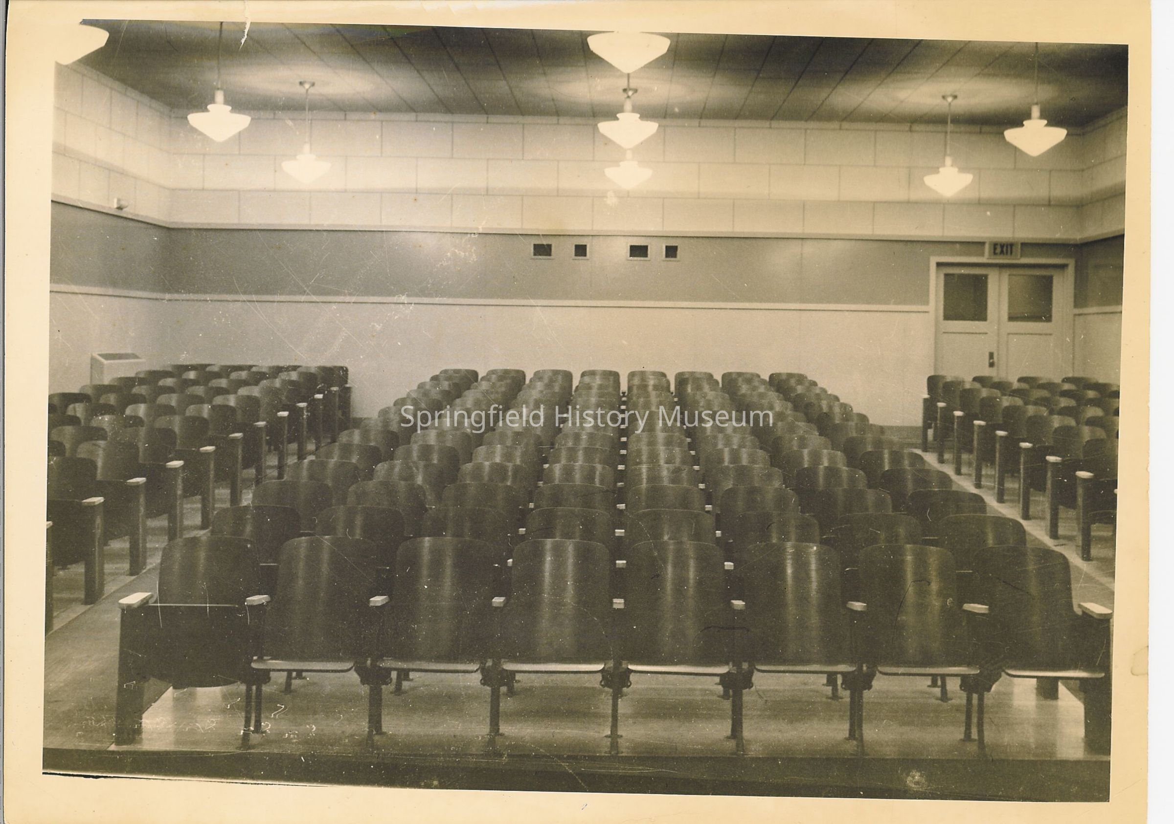 Springfield High visual arts room with chairs and lights above.Photograph Details