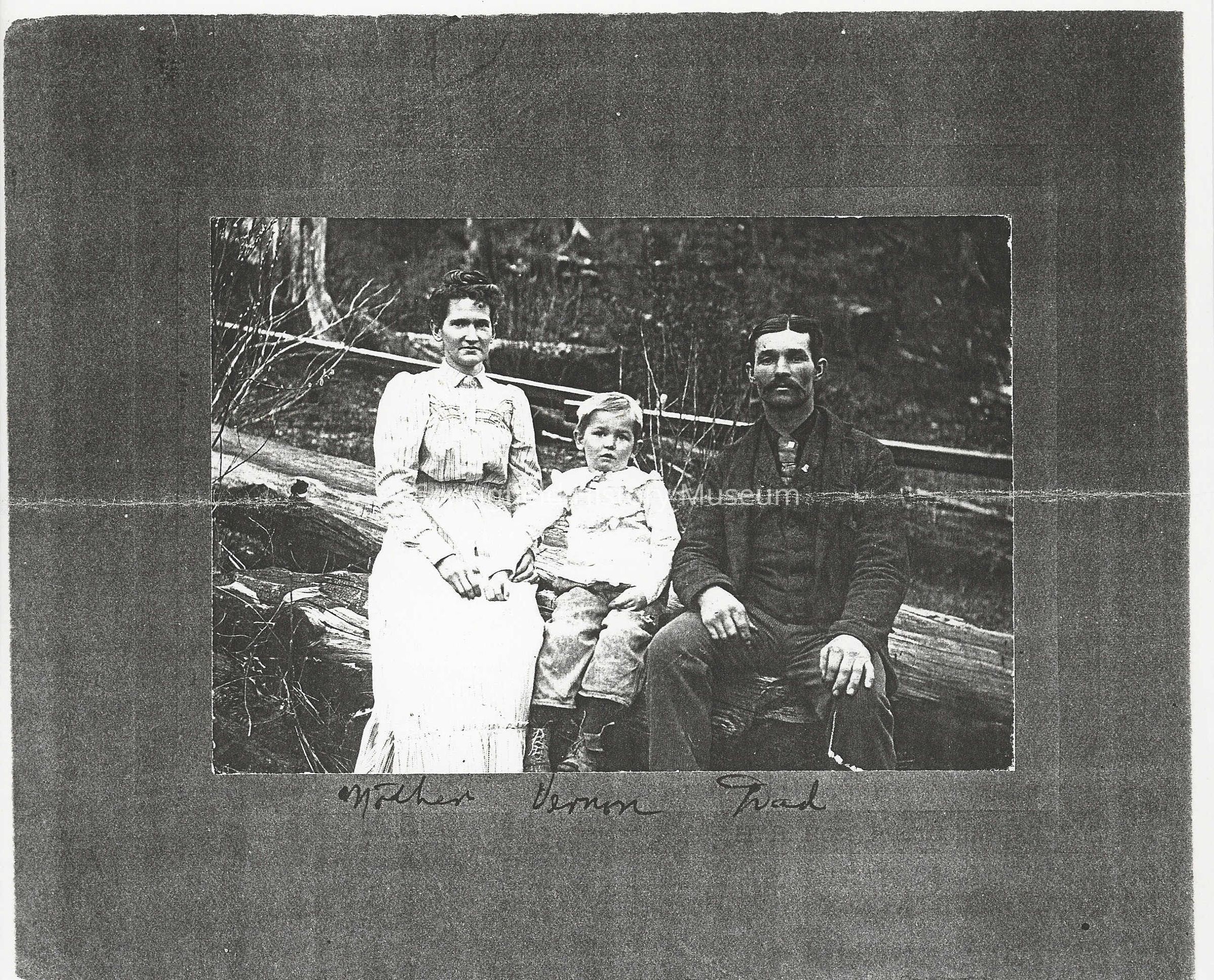 Photograph of Thomas, Jennie, and Vernon Rathbun, Saginaw, circa 1900. Photocopy and negative.Photograph Details