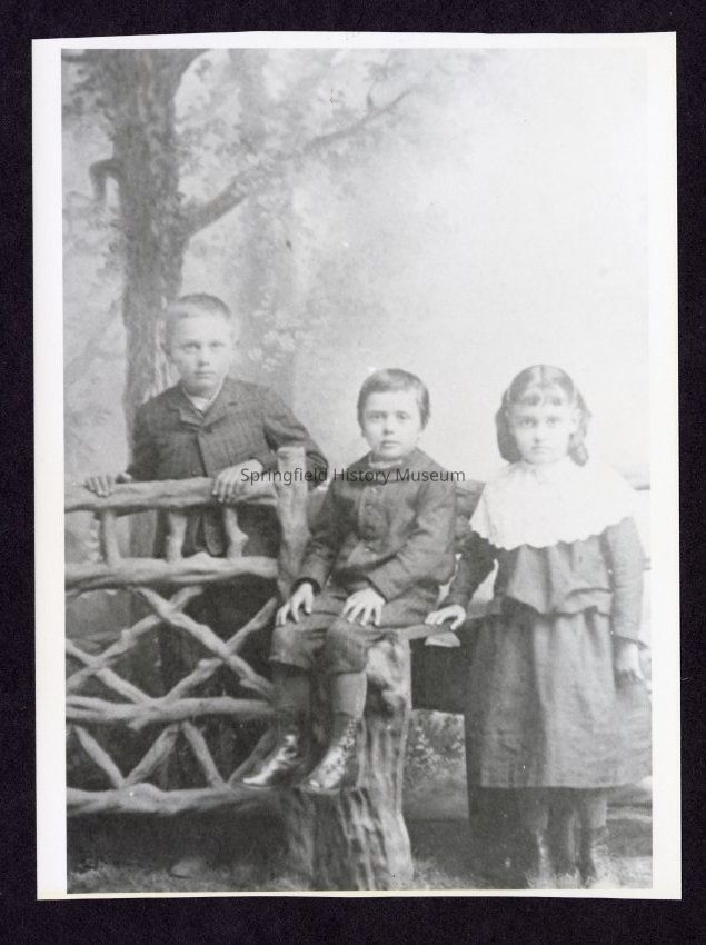 Photograph of three children, undated Transcribed inscription on back: "Lester, Osmer and Clare Stacy."