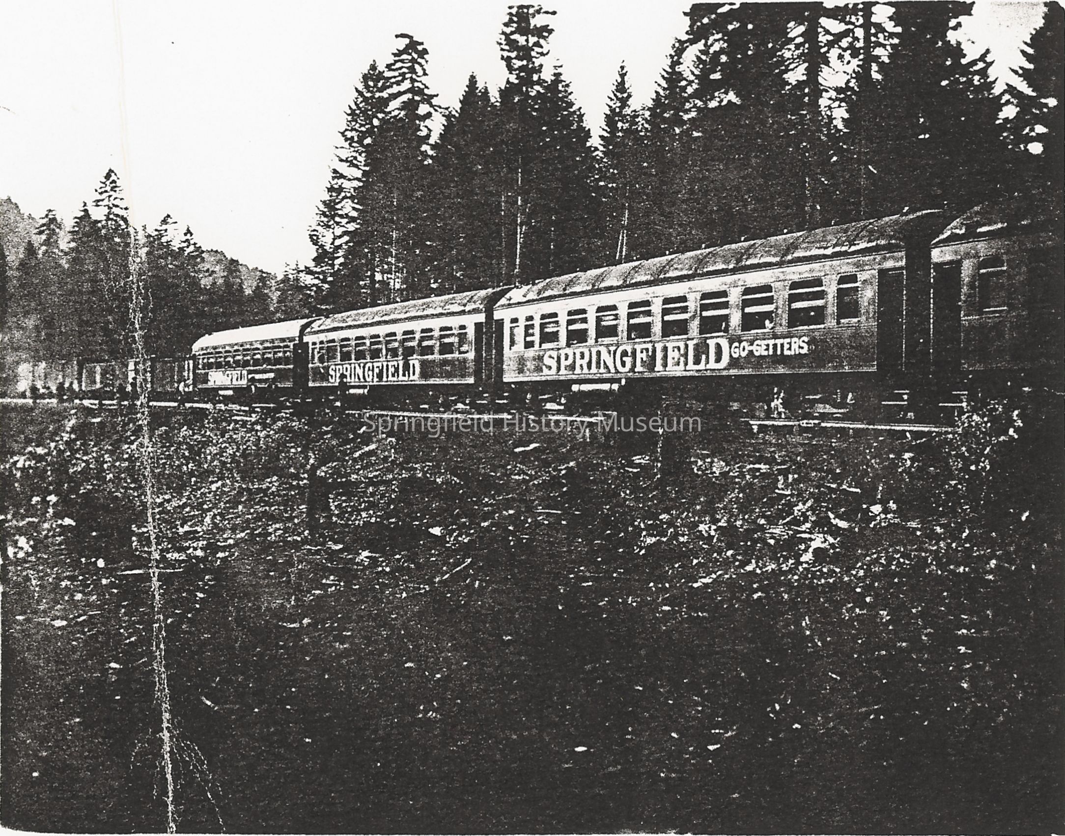 Photograph of train coming down the track named Springfield Go-getters. UndatedCollection