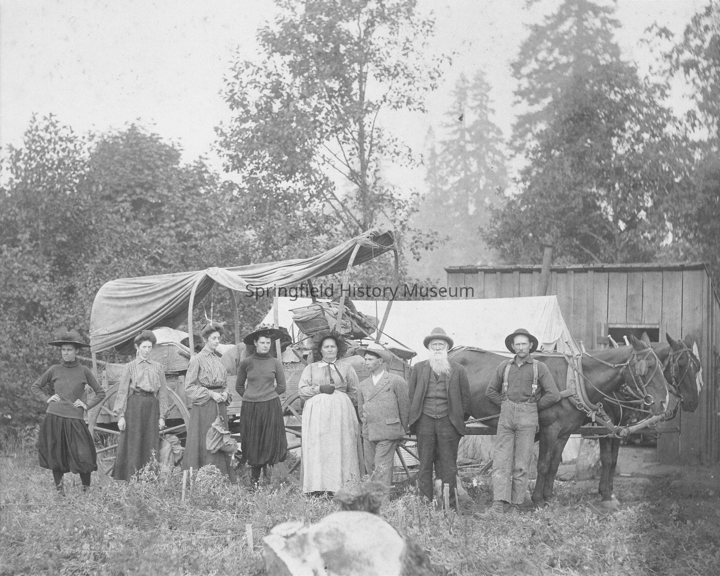 People, Transportation, Glenwood, Henderson Avenue, Wagon, Horses, West Springfield, Family Vacation, Black Bloomers, Glenwood--Streets--Henderson Avenue, People--Groups & Individuals, Transportation--Wagon, Transportation--Animal--Horses