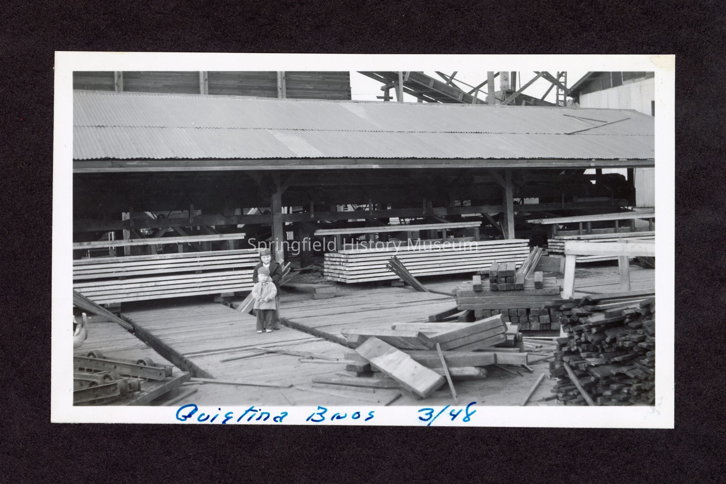 Photograph of two unknown boys, the Guistina Bros, infront of mill materialsEntry/Object ID