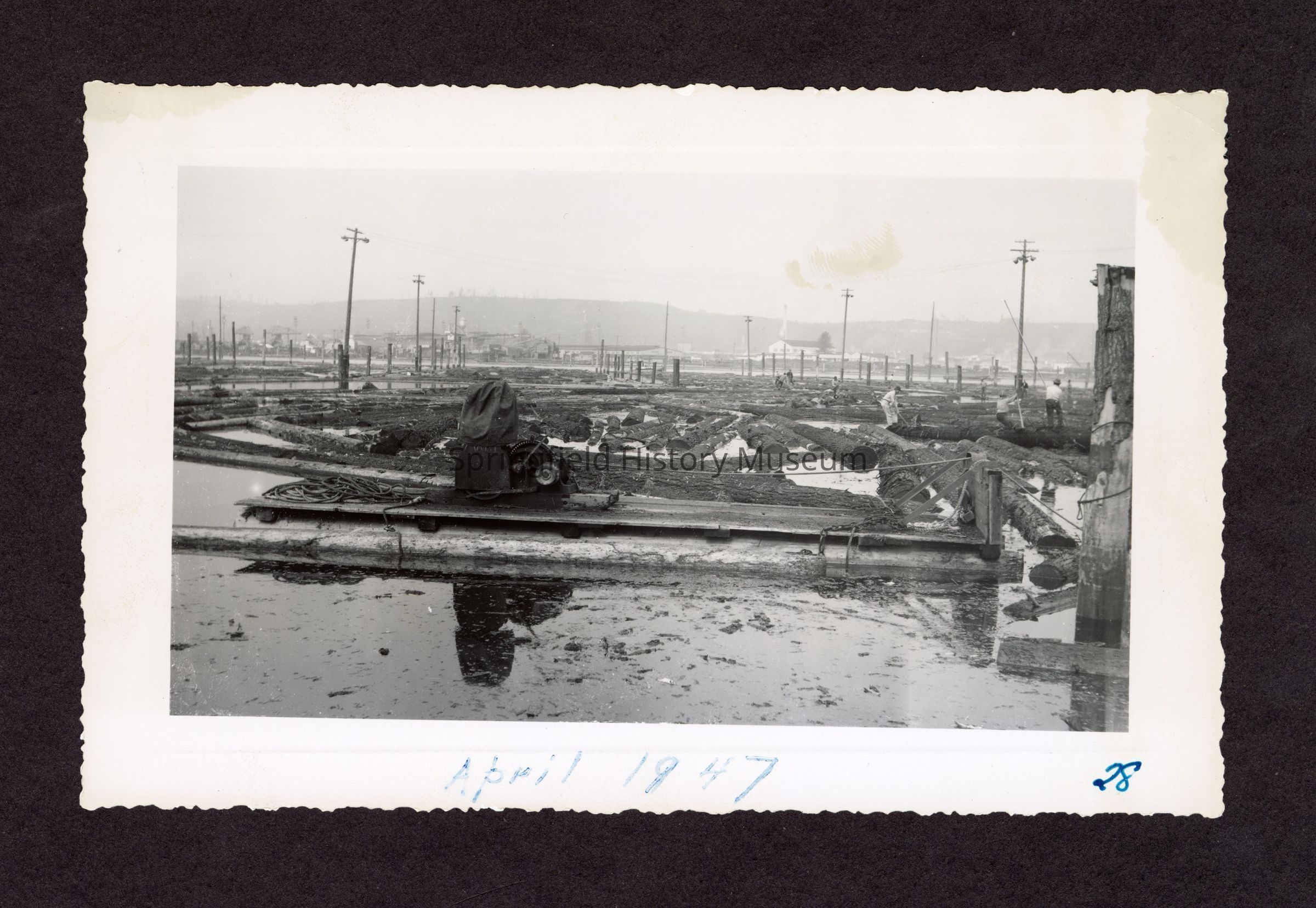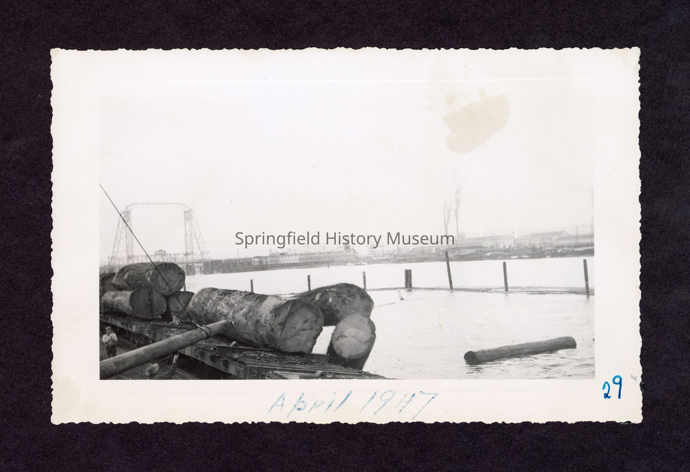 Photograph of Booth-Kelly log pond, on bottom in pen: "April 1947" and "29"Made/Created