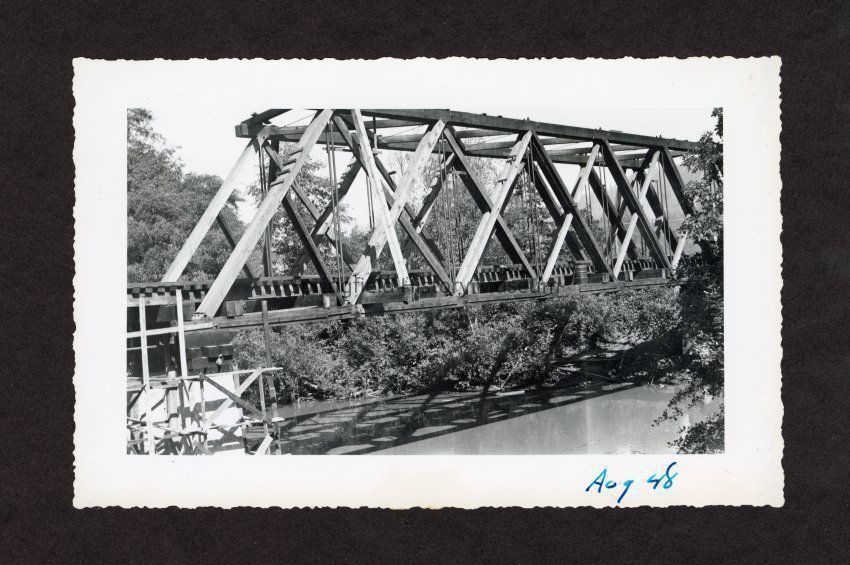 Photograph of unknown railroad bridge, "Aug 48"