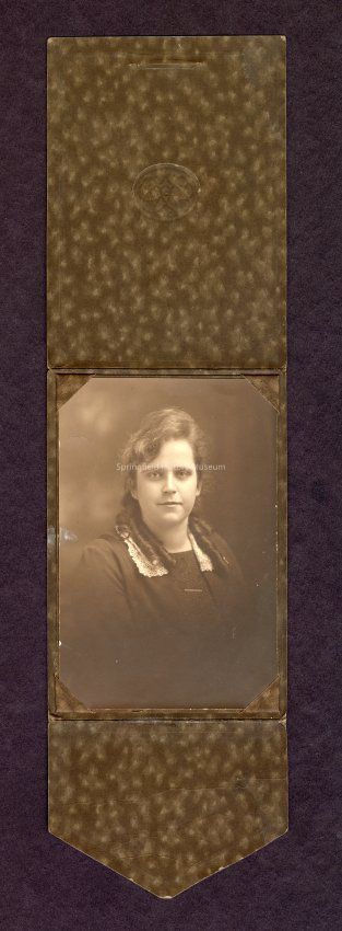 Photograph of unknown women in brown cover by The Hord Studio, Walla Walla Washington, undated print size measured when open