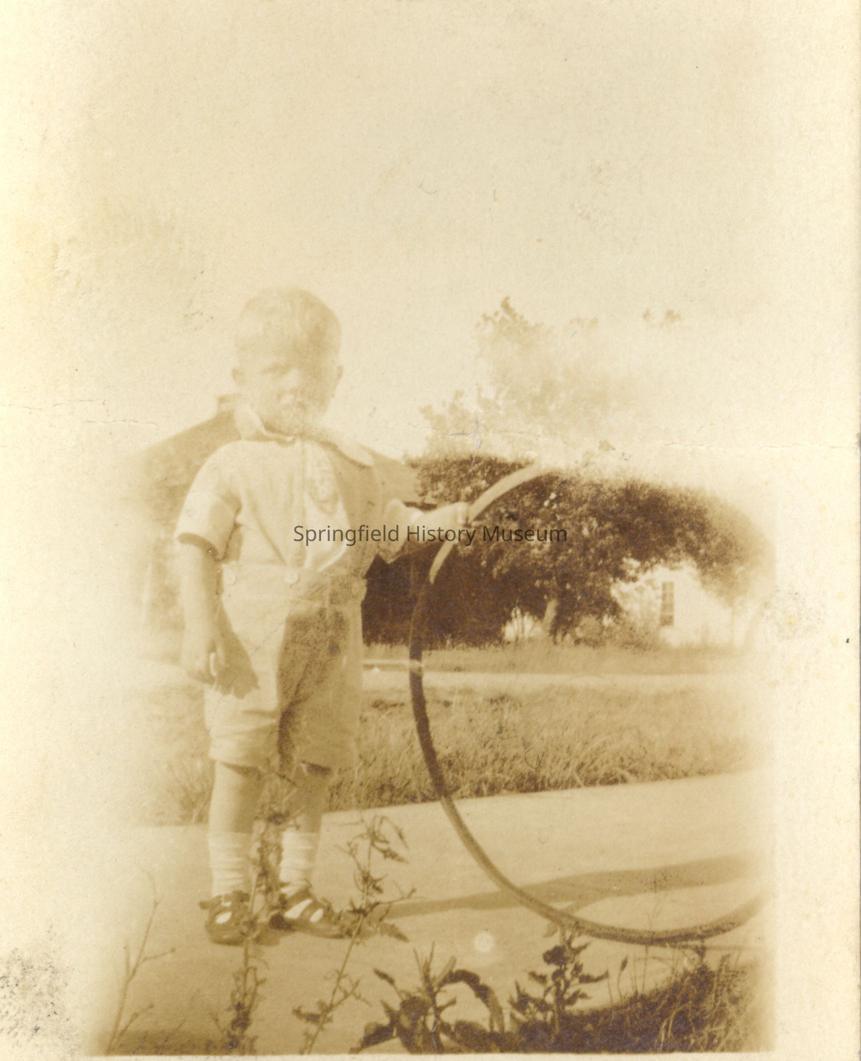 Photograph of Walt Jr. Laxton, undated, holding a hoop.