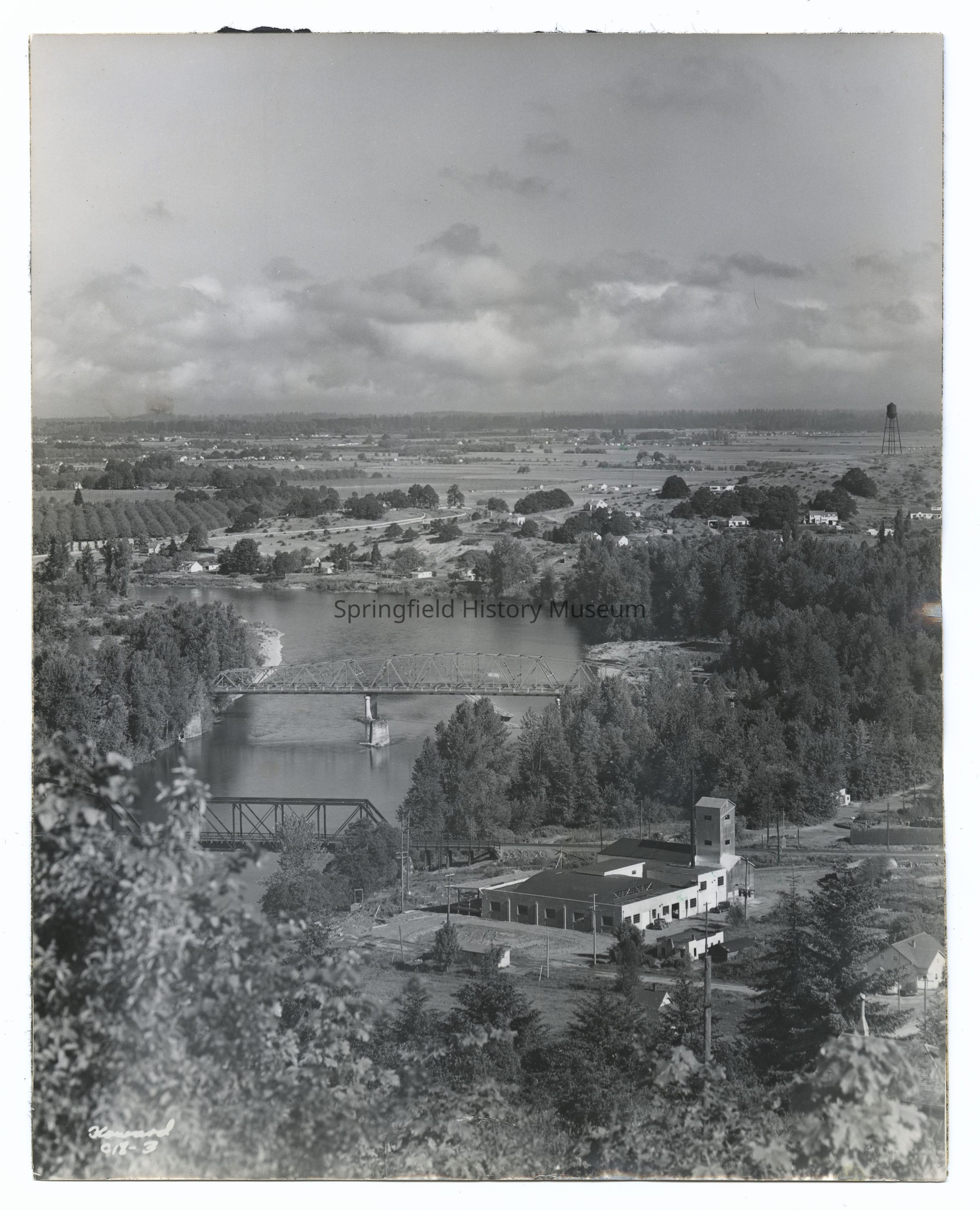 Photograph of West Springfield showing the Willamette River, Borden's Casein Company (creamery) and surrounding area, Springfield, 1945Entry/Object ID