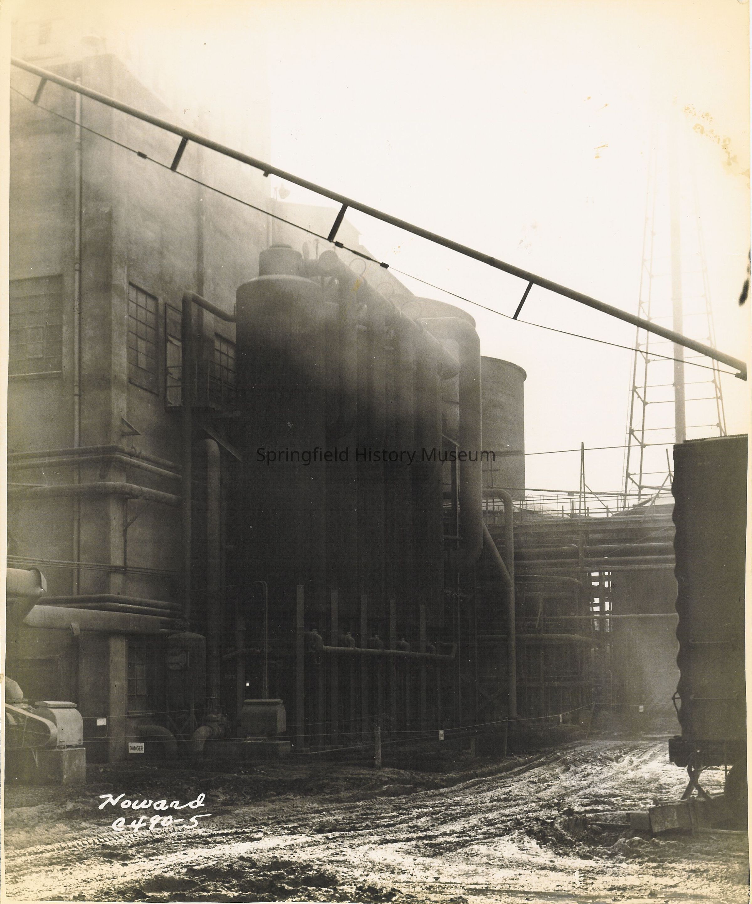 Weyerhaeuser Mill. View of tanks on the north side of the old recovery building. Marked "Howard C490-5"; 1952