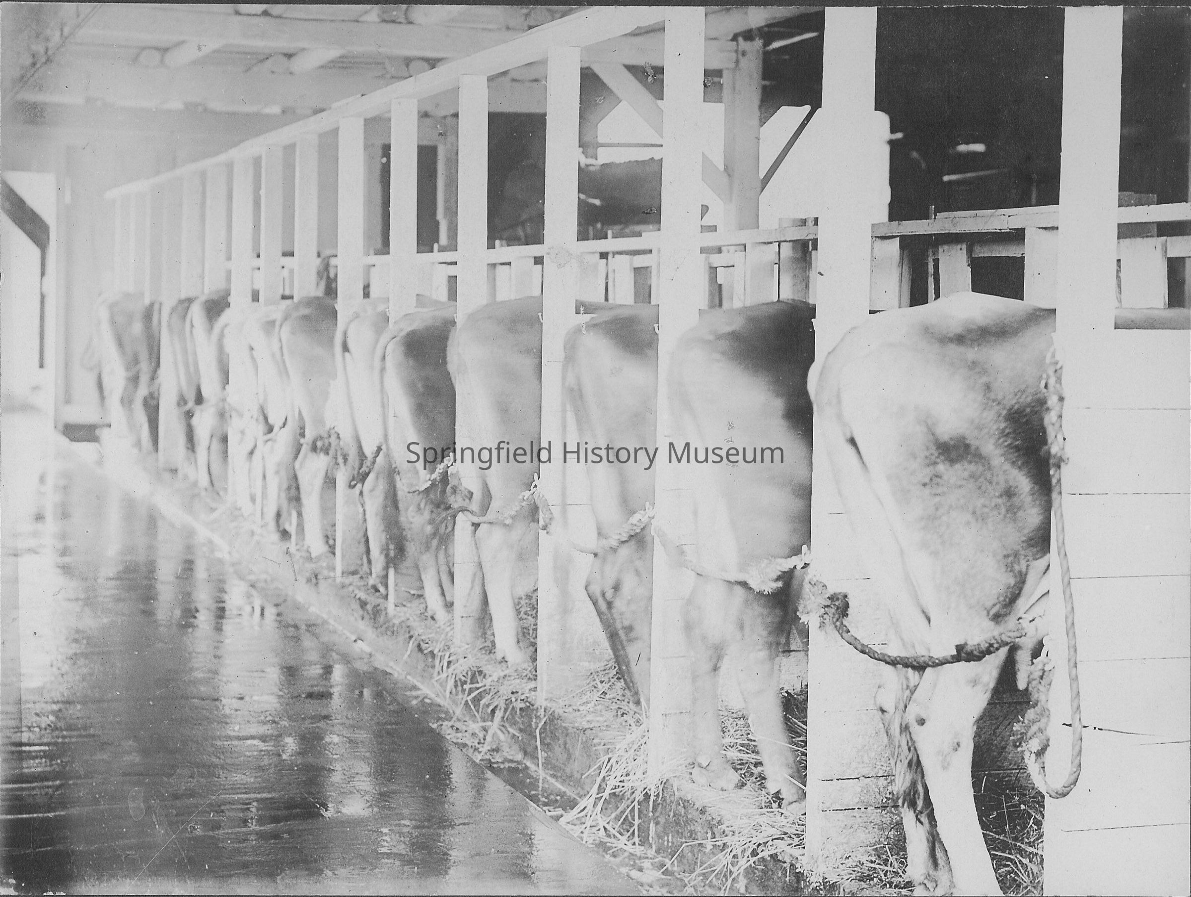 Jersey cattle in the barn of William Smeed, Walterville, Oregon; circa 1912. Mounted on black board.Photograph Details