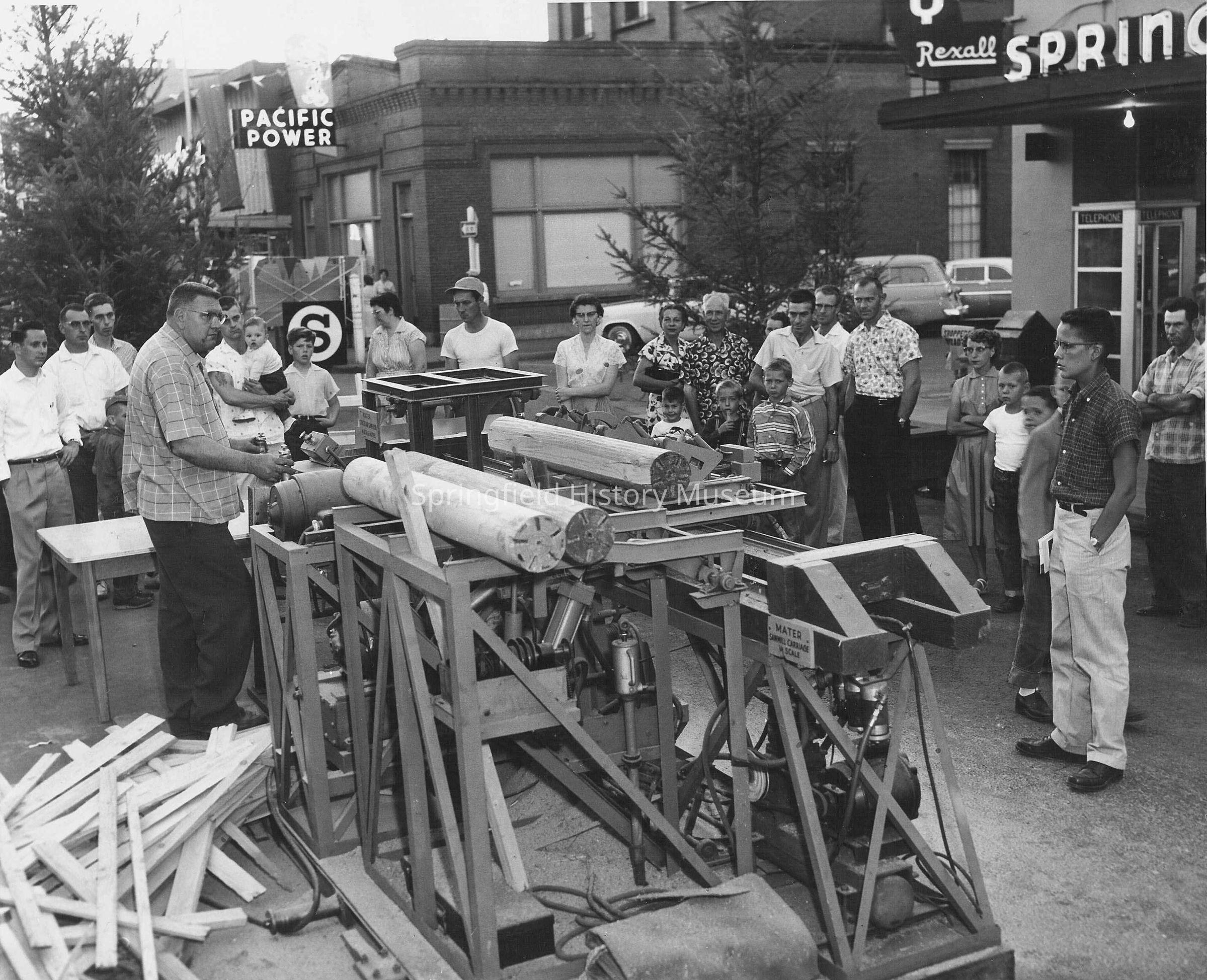 Business & Industry, Events & Activities, Shoppers Paradise, Springfield Pharmacy, Pacific Power & Light, Woodworking Exhibit, Main Street, 6th Street, Business & Industry--Shoppers Paradise, Business & Industry--Springfield Pharmacy, Buildings--Pacific Power, Events & Activities--Woodworking Exhibit, Springfield--Streets--Main Street, Springfield--Streets--6th Street, People--Groups & Individuals