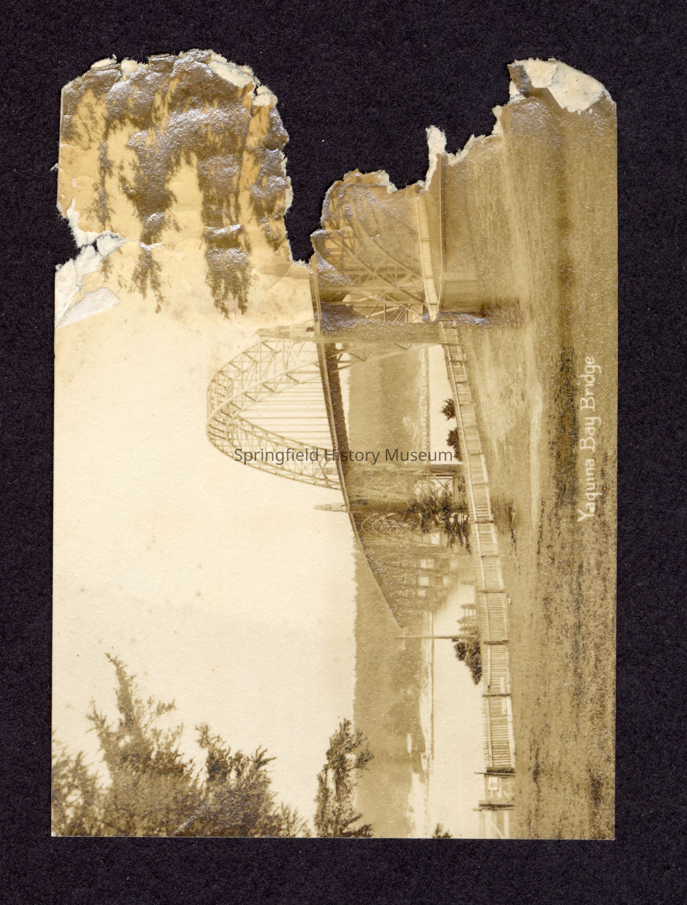 Photograph of Yaquina Bay Bridge. Photo is torn along the left side. Date unknown.Entry/Object ID