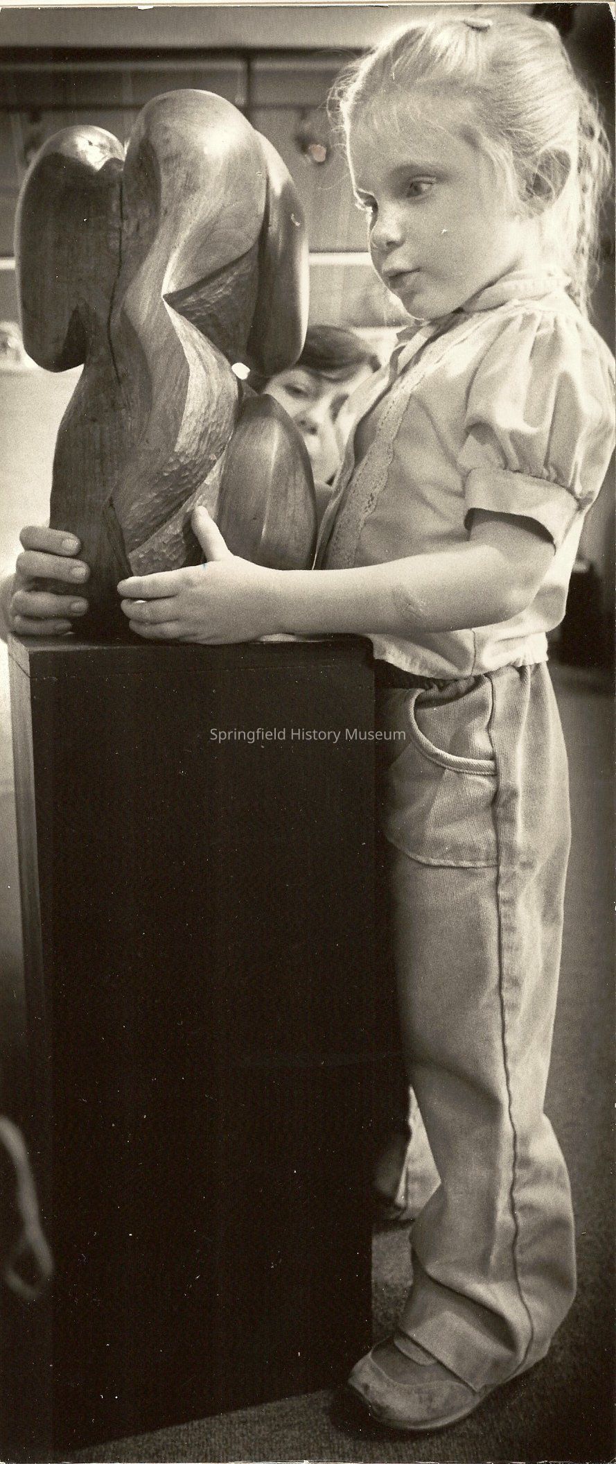 Photograph of young girl at Springfield Museum Sculpture Exhibit, Undated