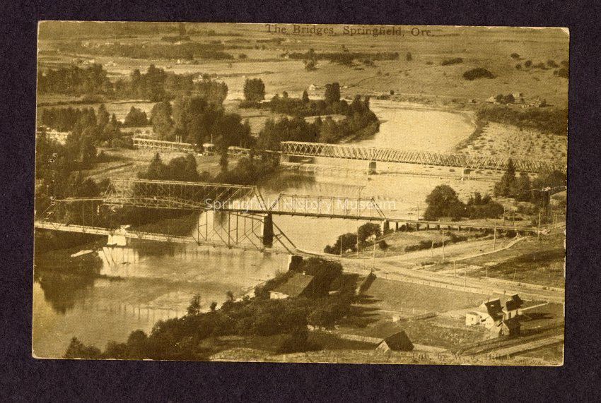 Photograph Post Card of the bridges of Springfield, Oregon. Date unknown.Entry/Object ID