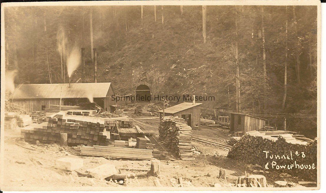Photograph postcard of tunnel & power house, Eula, Oregon, 1916Entry/Object ID
