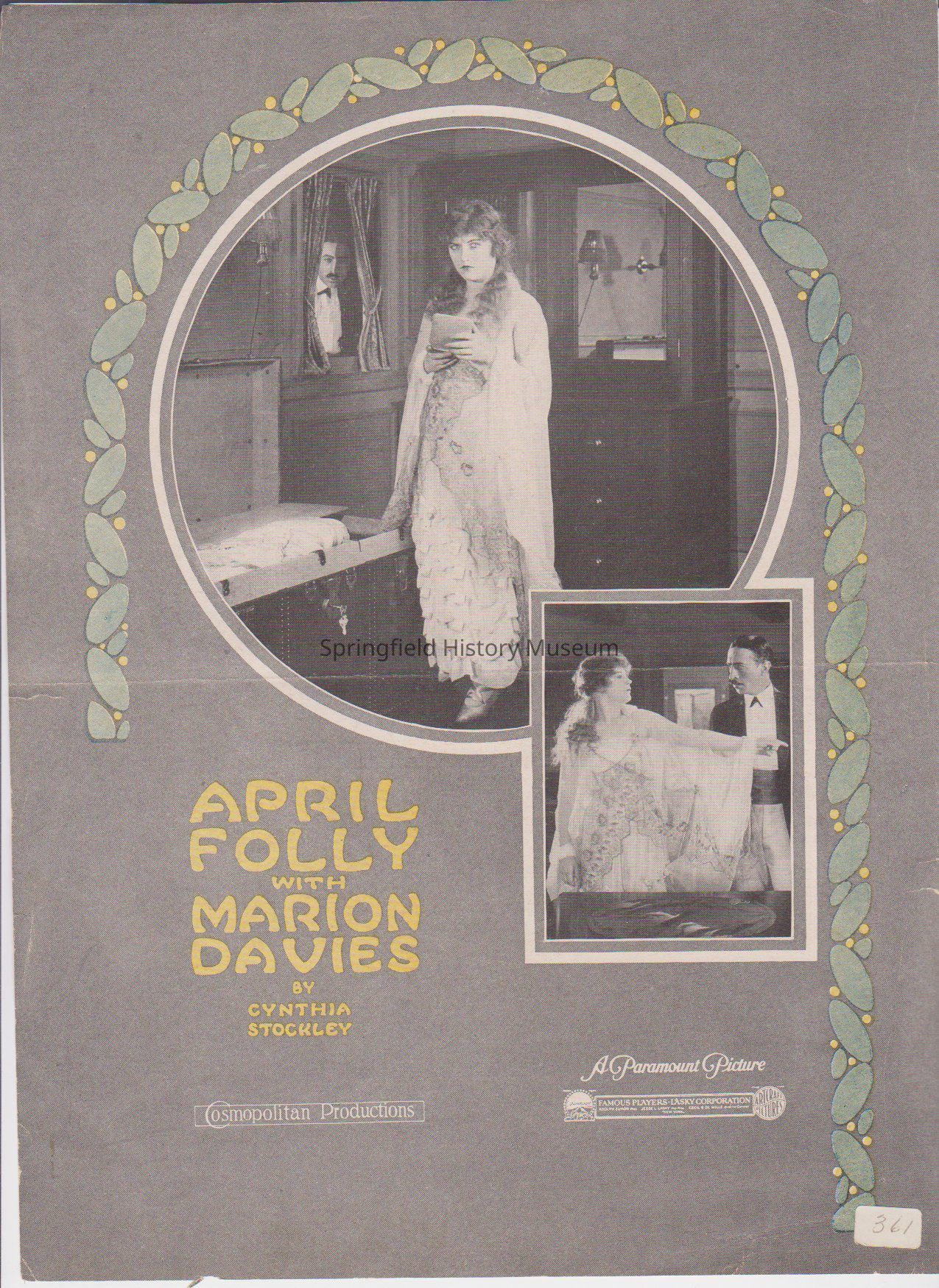 1) Photo / Advertisement for "April Folly" with Marion Davies by Cynthia Stockley. Cosmopolitan Productions, A Paramount Picture. Back: Pictures.