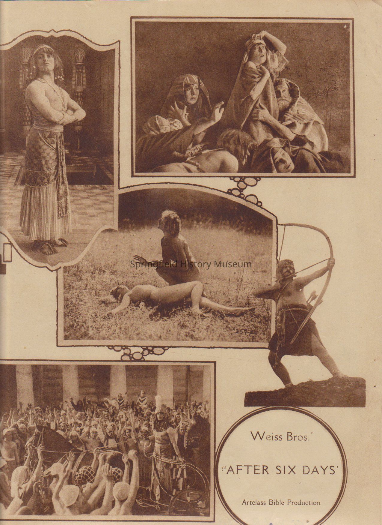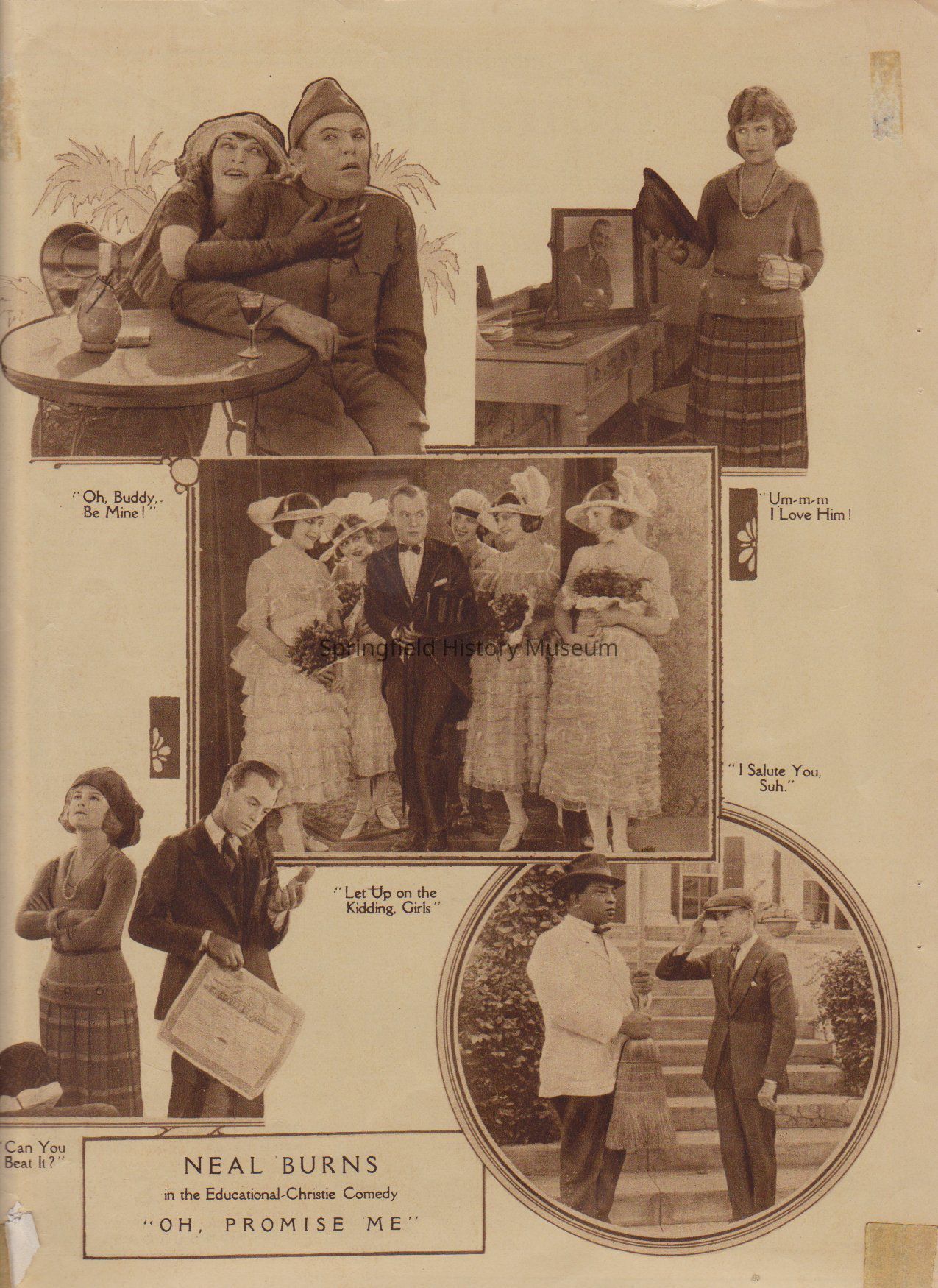 Picture/ Advertisement for Carming Norma Talmadge as she appears in " Smillin' Through" a first national picture. Page 2 Weiss Bros.'"After Six Days" Artclass Bible Prodution. Page 3 Charles Hutchison in the pathe serial " Go Get 'EM. Hutch". Page 4 Neal Burns in the educational-Christie comedy "Oh, Promise Me". Picture of unknown actress.