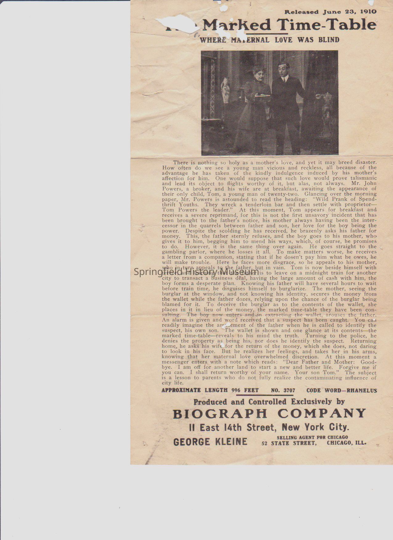 Released June 23, 1910. Produced and Controlled Exclusively by Biograph Company.Copyright