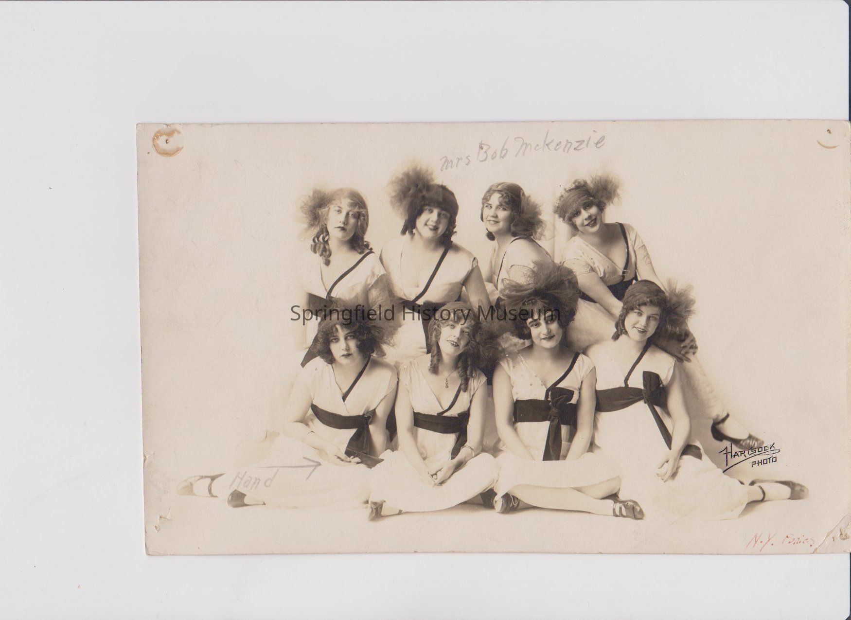 Picture of 8 female performers. "Mrs. Bob McKenzie" written on front.