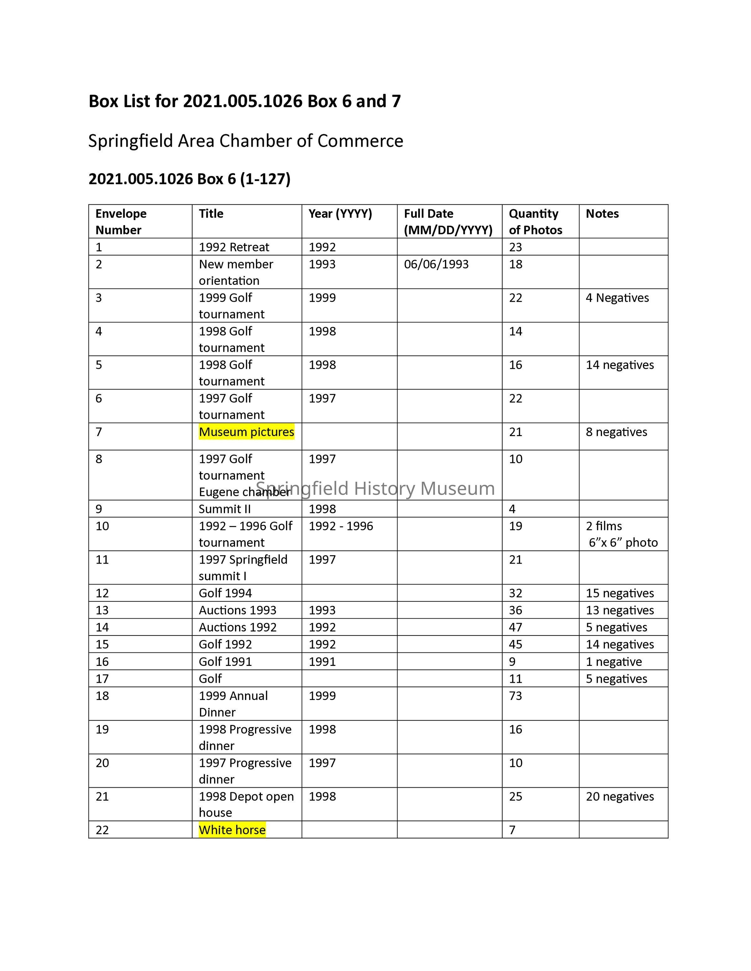 Photographs and negatives of Chamber activities (retreats, holidays, business openings, career days, festivals etc.), 1980s-2000s. Organized in original envelopes, list in PDF file (see attachment).Photograph Details