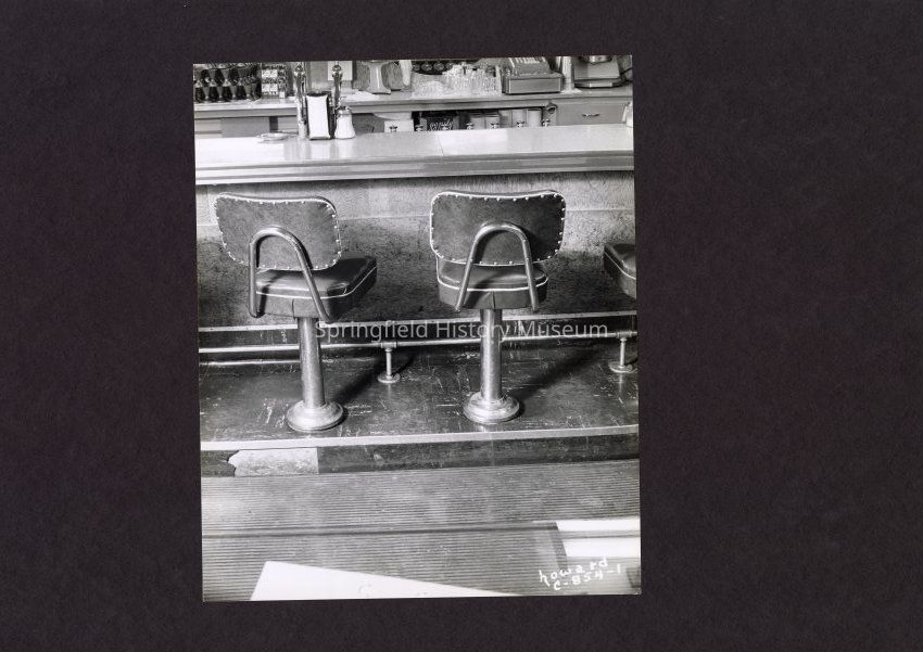 Photograph Stools and Counter, Springfield Pharmacy, 1956Entry/Object ID