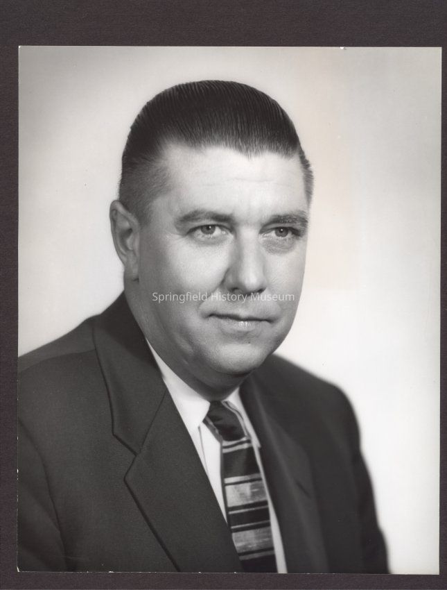 Black and white photograph - portrait of a man in jacket and tie. Stamped on back, "Restricted photo - Do not reproduce without written license agreement - Howard Studio 740 Main _ Springfield, Oreg."Collection