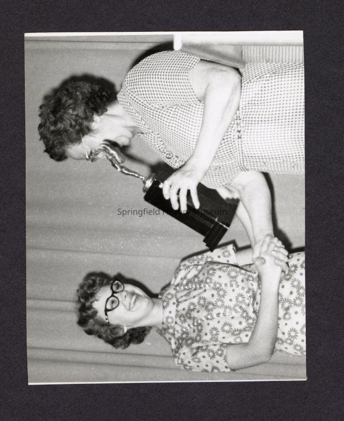 Photograph, Women Shaking Hands, One Holding a Trophy, Date Unknown.Entry/Object ID