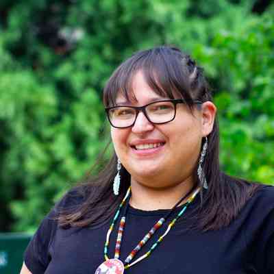 Three photographs of Sheena Puls, made as part of Springfield History Museum's Oral History Project "ILLUMINATION 2024-25: Indigenous AI AN Experience".