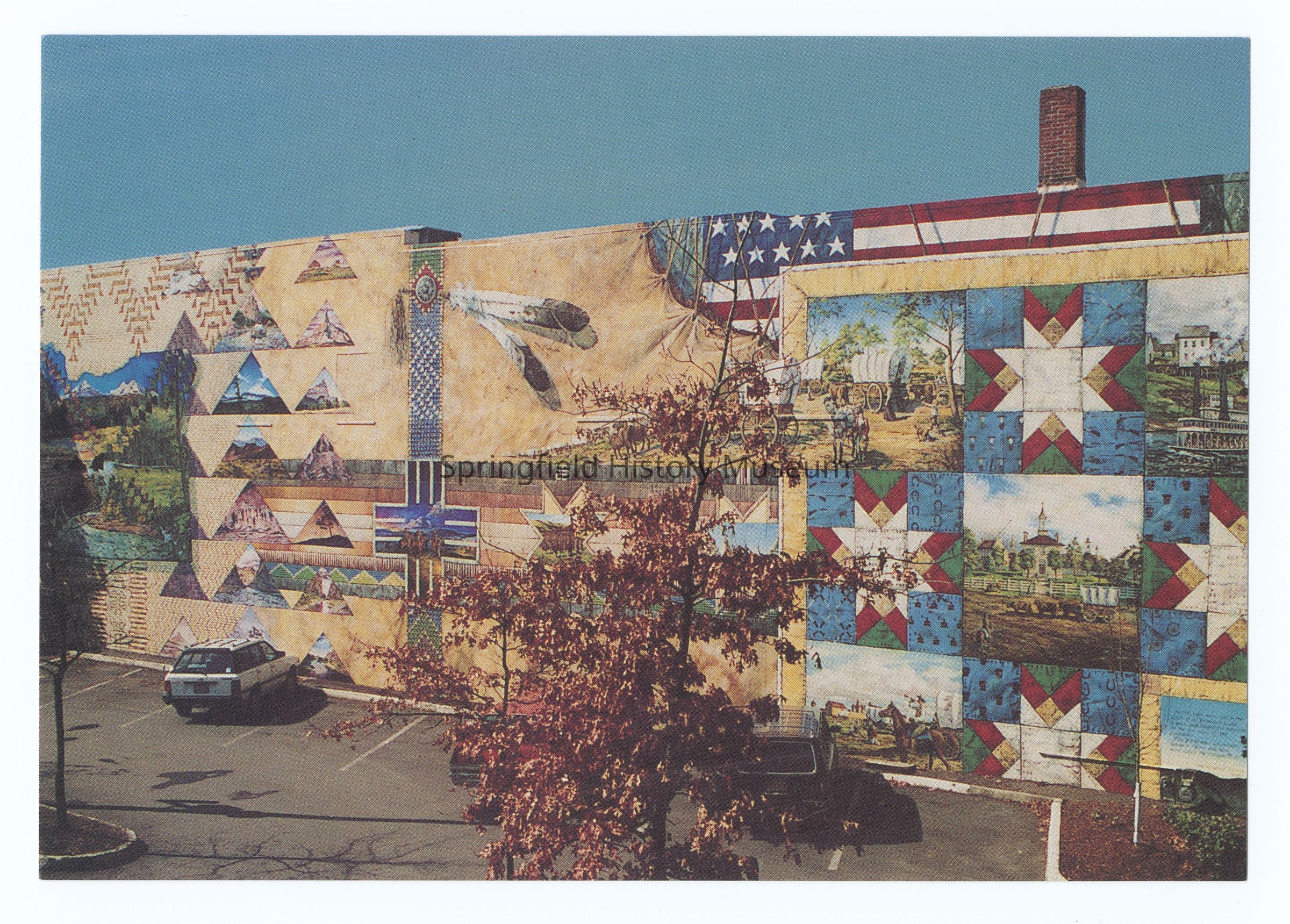 Postcard of a mural "the Oregon Trail" by Ann Murray, 500 Main Street, Springfield, undated, circa 1990. Number 1 of a postcard series by the Springfield Chamber of Commerce.Photograph Details