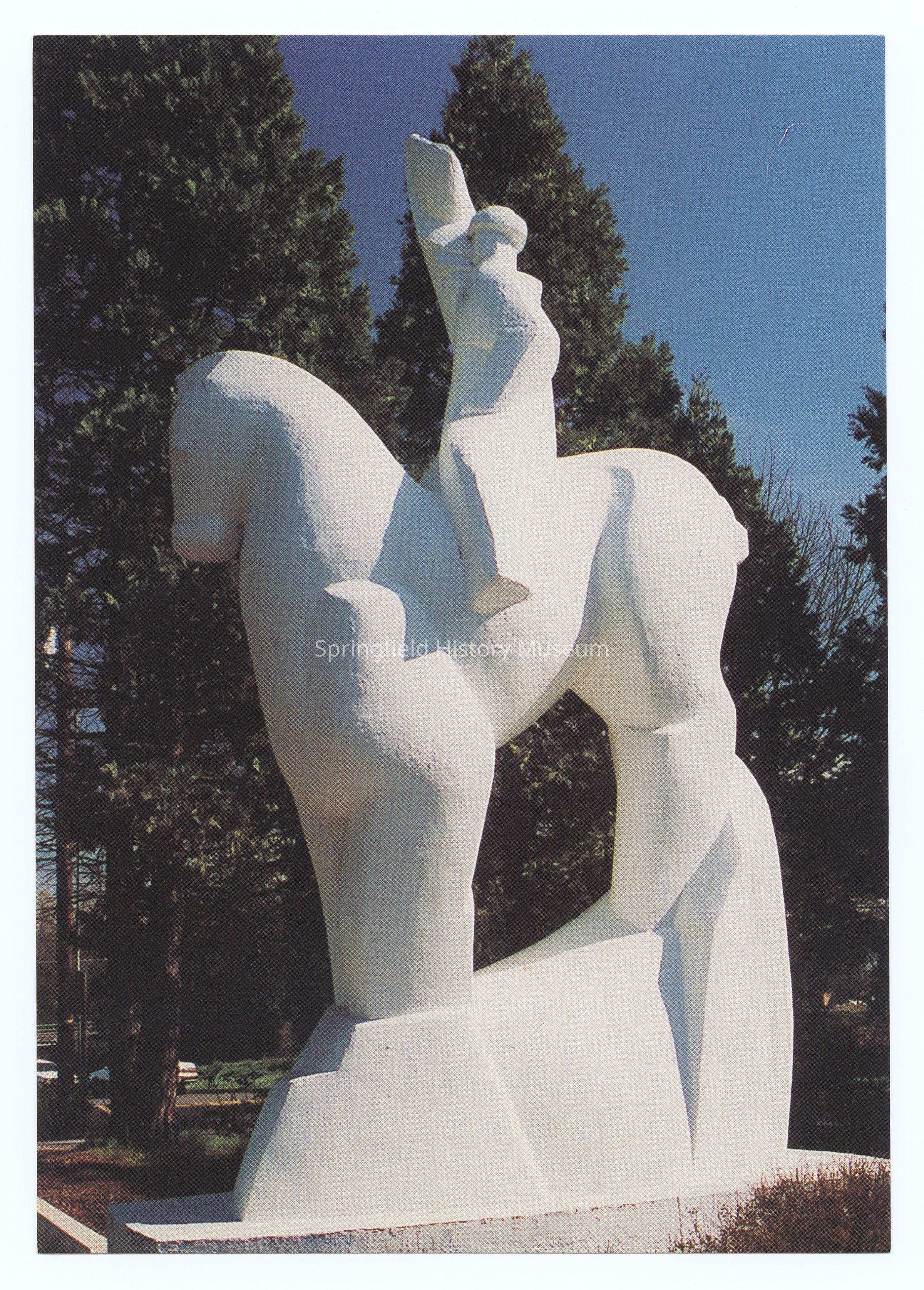 Postcard of the Oregon Statehood Memorial - The White Horse Statue, Mill Street, Springfield, undated, circa 1990. Number 5 of a postcard series by the Springfield Chamber of Commerce.Photograph Details