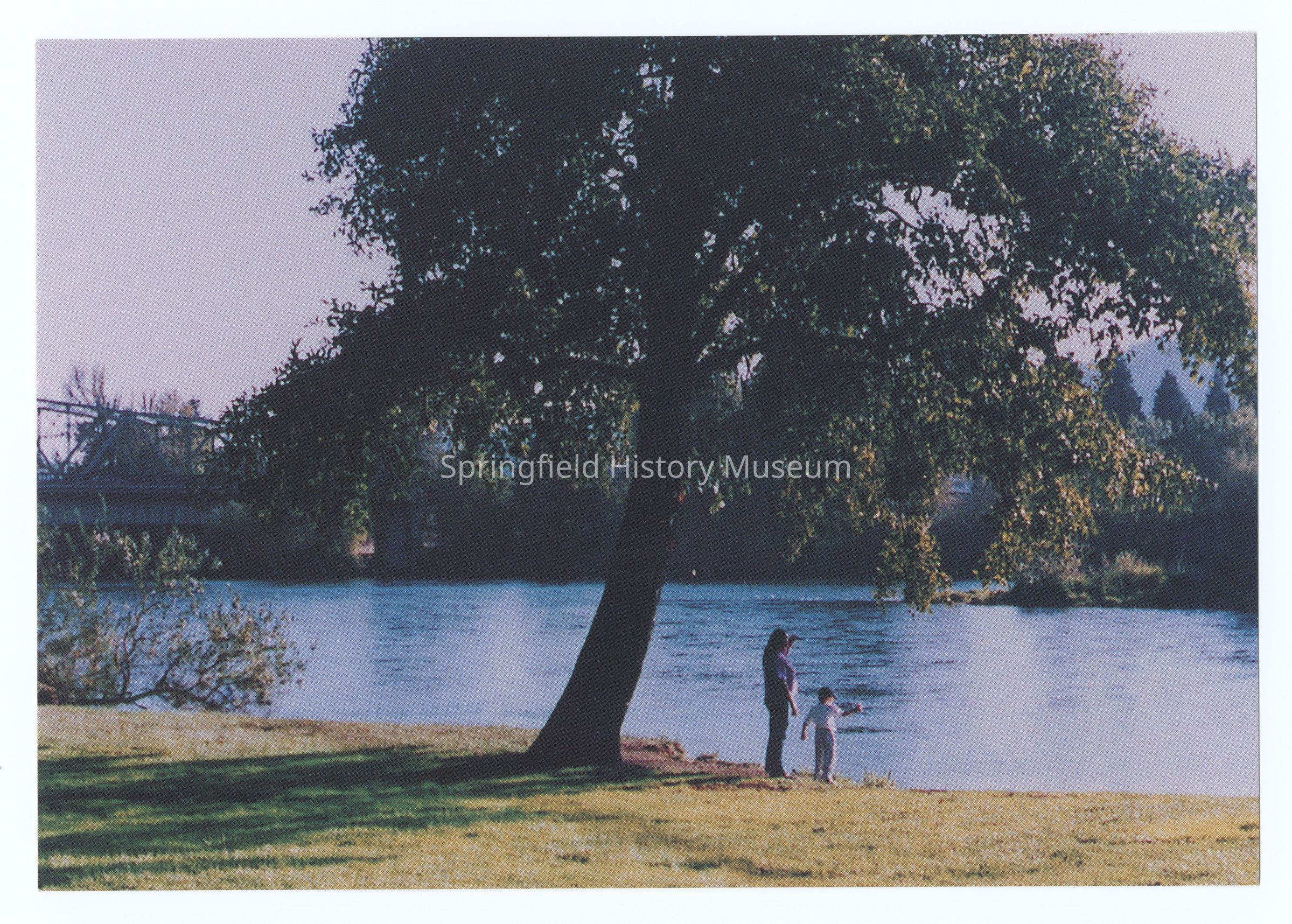 Inscription back: 'Willamalane's Island Park. Offers a scenic overlook of the Willamette River in the heart of Springfield. 015. For information contact Springfield Area Chamber of Commerce, Springfield 97477 503 746-1651. Photo courtesy Willamalane Park & Recreation District. Produced by American Scenic Originals, Springfield 503 726-4193"Copyright