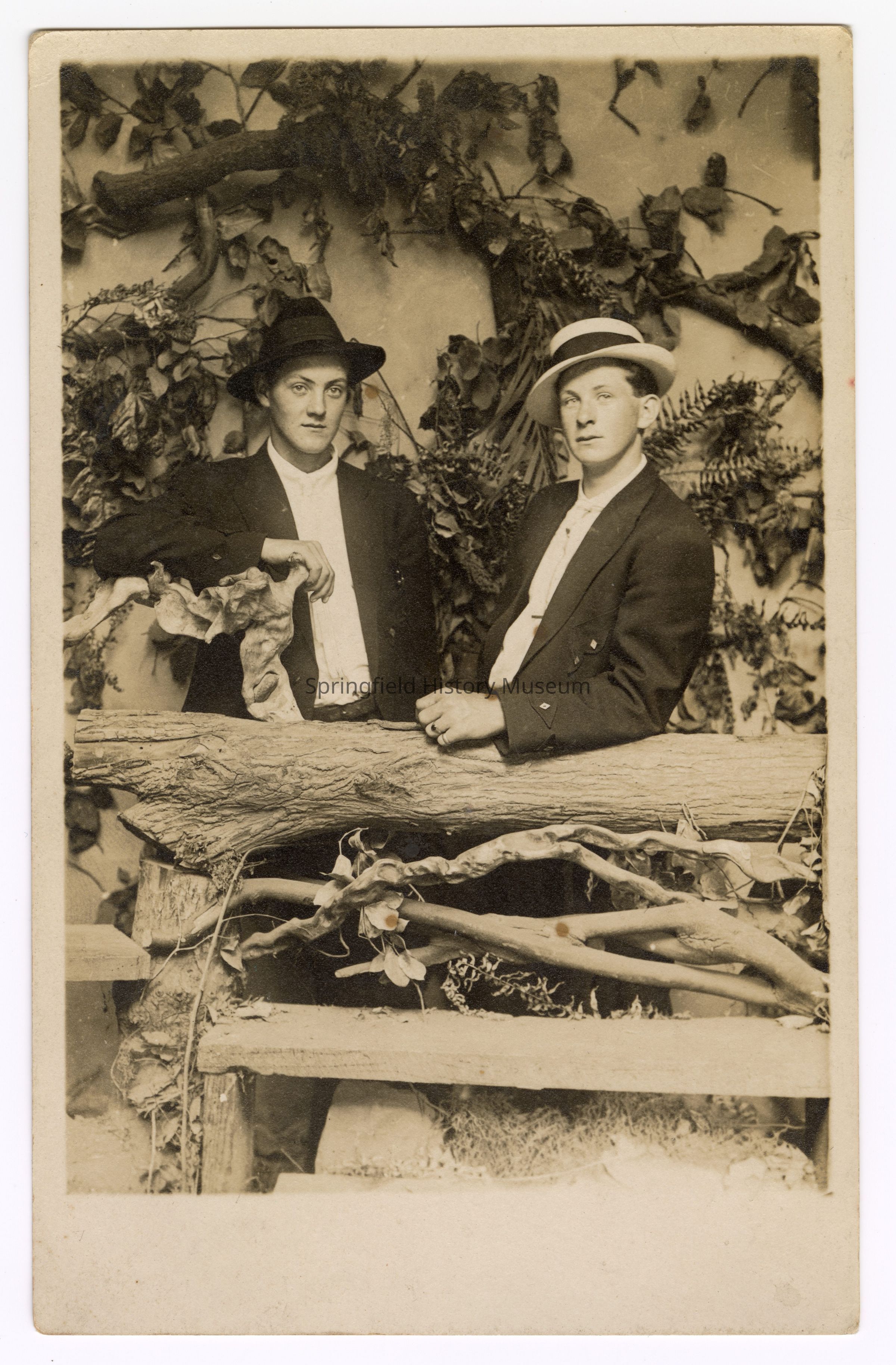 Postcard photograph of Bill Davis and Yale Smith, 1919; Inscription back: "Postcard", " Yale Smith, Bill Davis 1919"Photograph Details